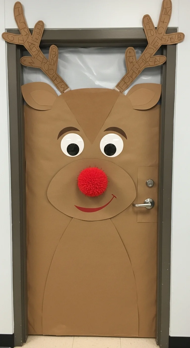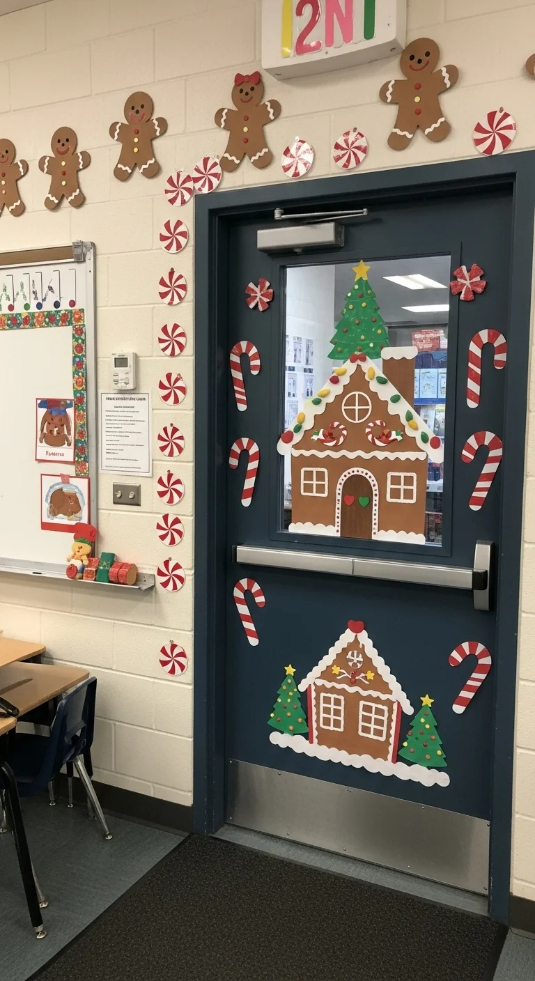 Transform your classroom door into a festive scene! Wrap it in brown paper and add a red nose for a “Rudolph” theme. Or go for a giant snowman or gingerbread house look. Use construction paper, wrapping paper, and tape—cheap materials with big impact. Students can help design and decorate to make it a team effort.