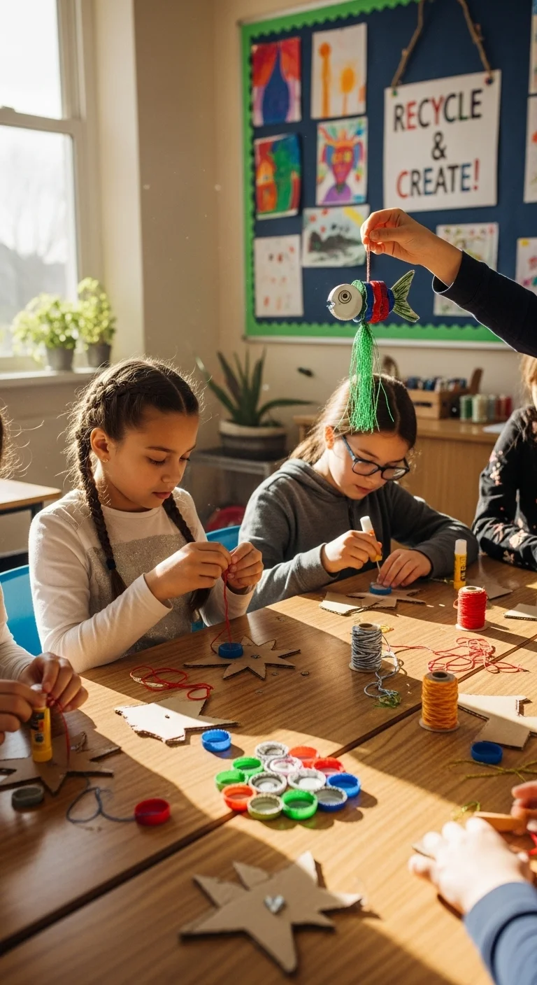 Turn recycling into a fun holiday project. Use bottle caps, cardboard, and scrap paper to make creative ornaments. Paint them, add glitter, or tie with string to hang on a small classroom tree. It’s sustainable, fun, and teaches students about reusing materials creatively.