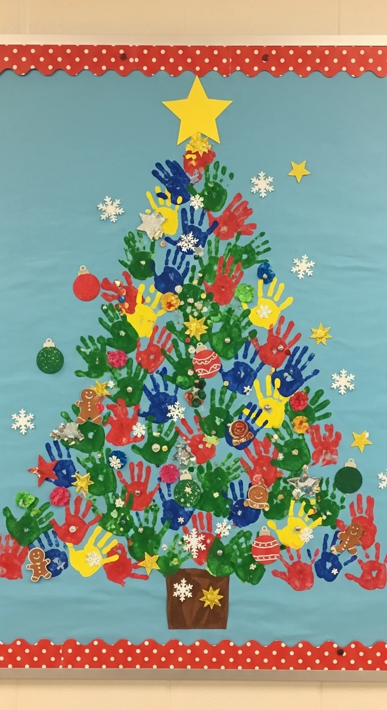 Turn your bulletin board into a festive focal point. A great idea is to make a Christmas tree using green handprints from your students. Add paper ornaments with their names and favorite holiday activities. It’s personal, cute, and easy to change after the holidays.