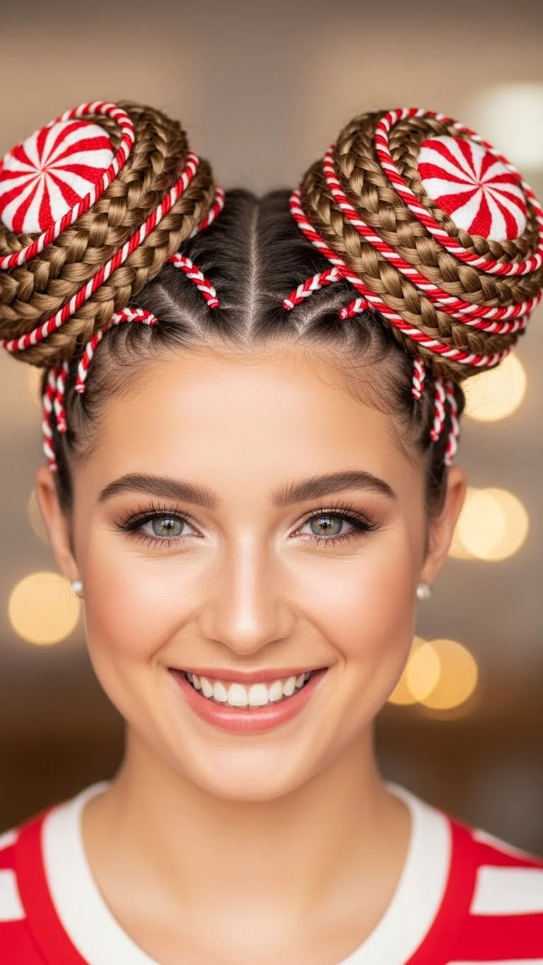 This style mimics the look of a holiday treat. Start a regular side braid or a French braid. Before you begin, anchor a red and white ribbon at the top with a small pin. Treat the ribbon as part of one hair strand. As you cross the sections, the ribbon wraps around the hair. You can find striped ribbon at most dollar stores. It adds a pop of color without needing expensive accessories. Secure the end with a clear elastic. It’s a simple way to make a basic braid look professional.