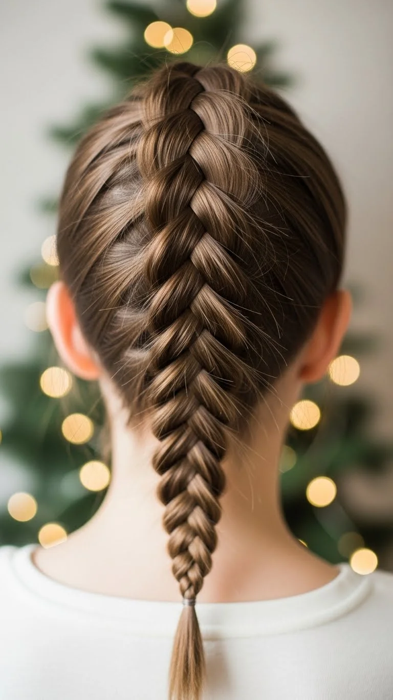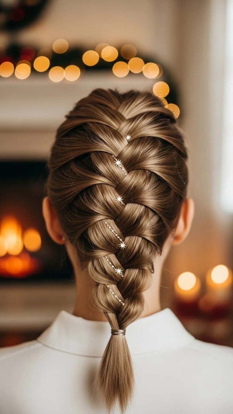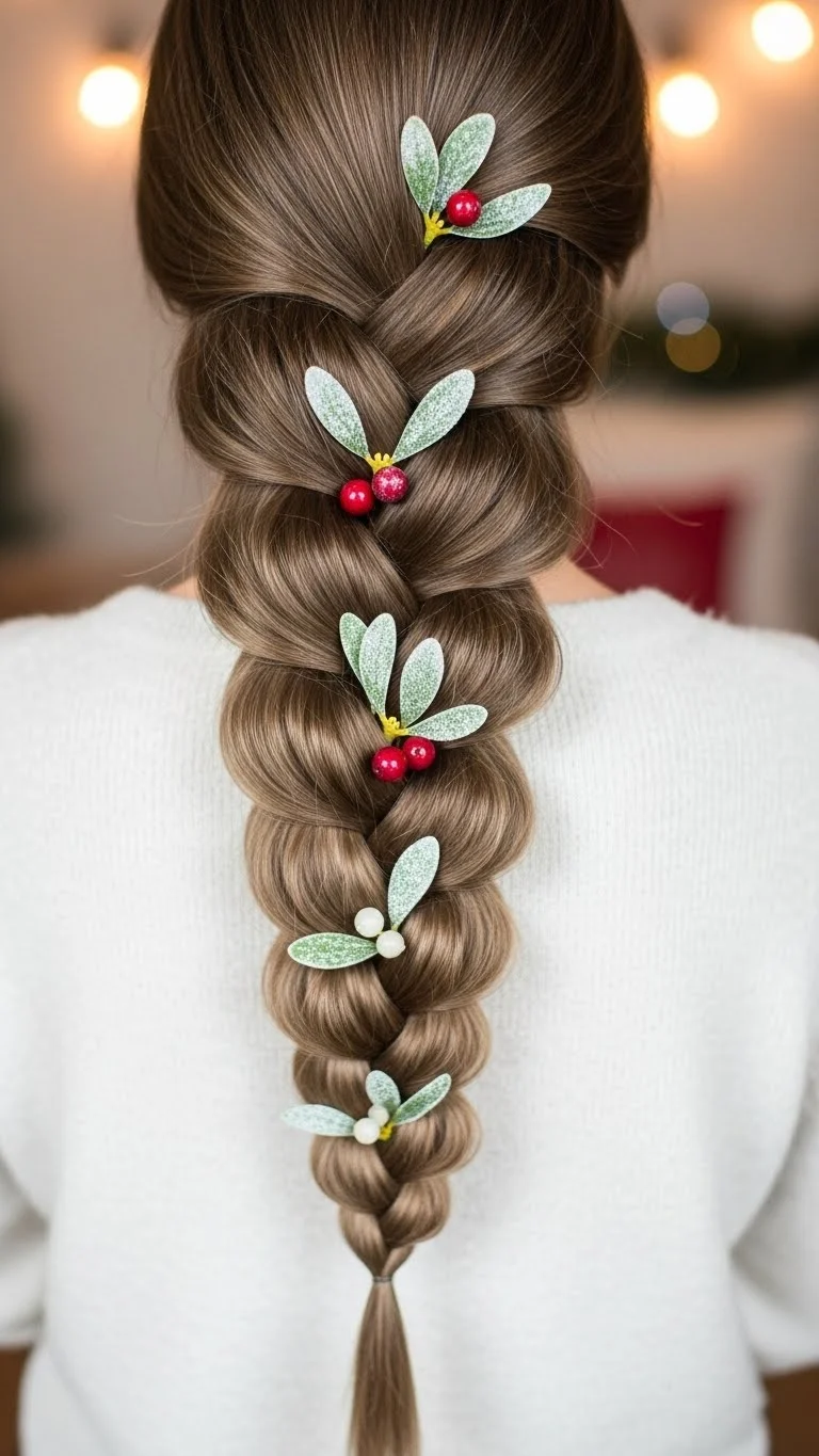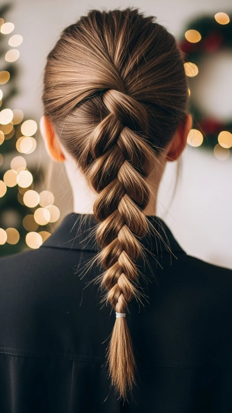 A Dutch braid always looks polished for Christmas. It sits close to the scalp and gives a bit of texture without feeling heavy. If your hair is thick, divide it into three tighter sections. If it’s fine, keep it loose for more volume. Add a ribbon at the tail for a simple upgrade. You can even thread a thin red or gold string through the braid. It’s cheap and looks pretty in photos. This style stays put for hours, even during busy gatherings. If you’re short on time, braid only halfway and secure it with a soft elastic. Kids and adults can do this quickly with a little practice. Add small pins or a decorative barrette to finish the look.
