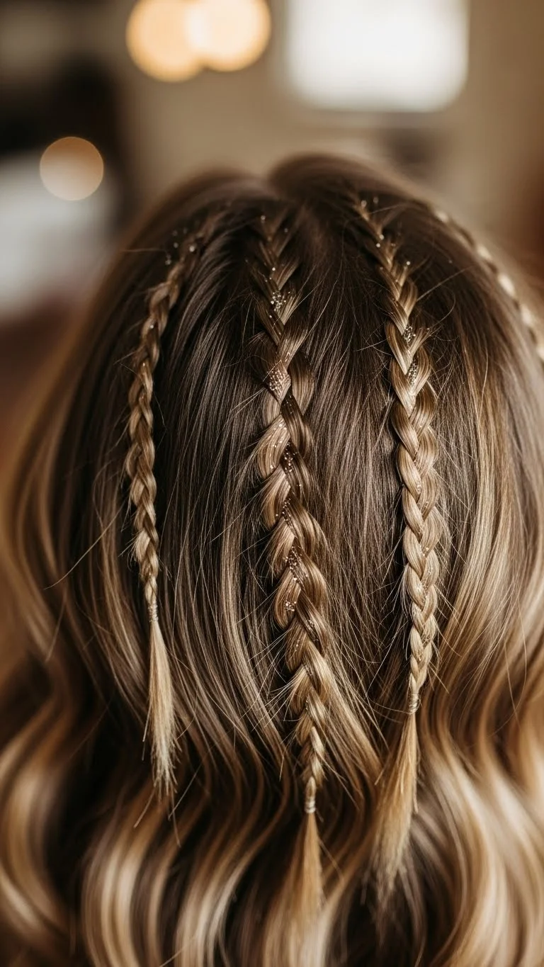 1. Mini Braids with Tinsel Strands