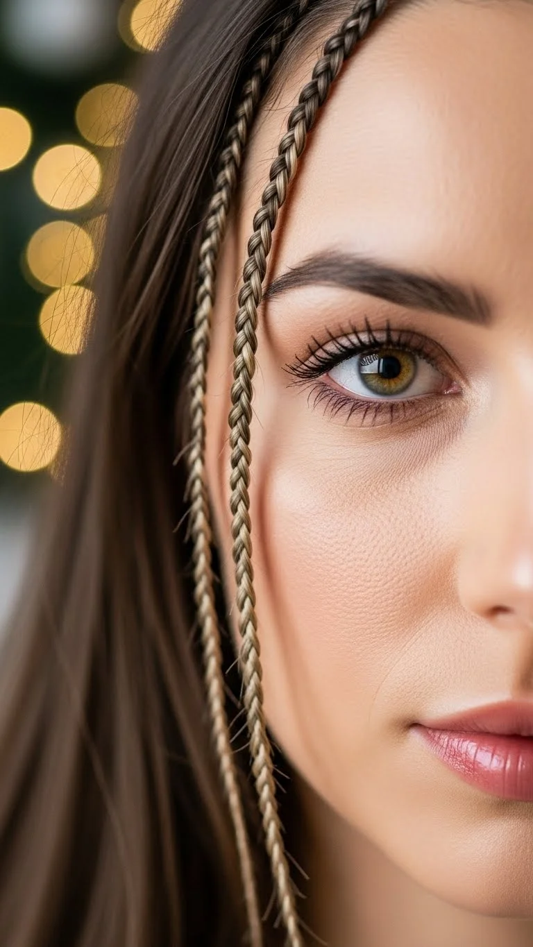 Micro braids around the face add a gentle touch without changing your whole hairstyle. Make tiny braids near each temple and secure with clear elastics. Add a little sparkle pin if you want holiday shine. Leave the rest of your hair natural. It suits all hair types and takes very little time. Budget-friendly and cute for any Christmas event.
