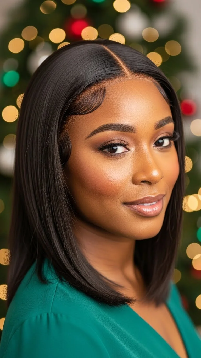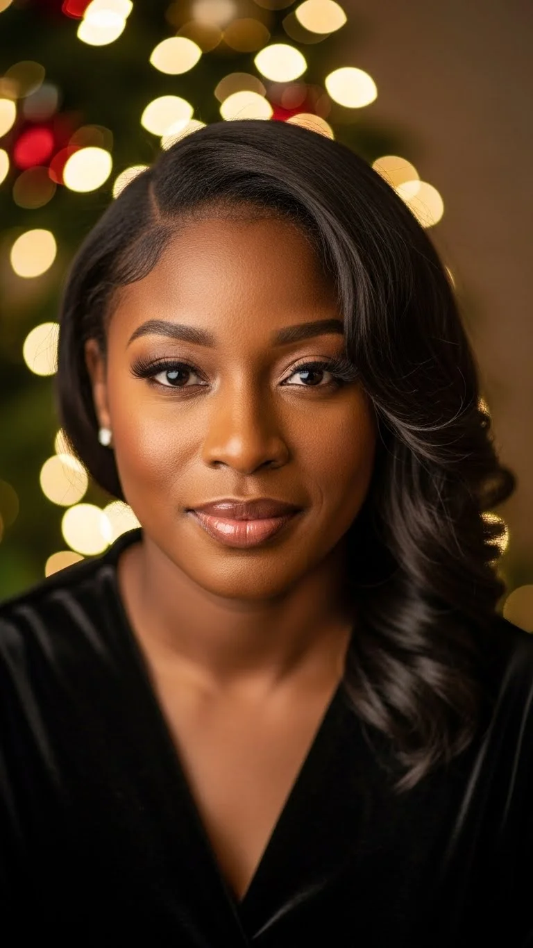 Soft waves give a calm, cozy look for Christmas. Use a curling wand or flexi rods to create loose curls. Brush them out gently for waves. A deep side part adds shape. Add a bit of lightweight oil for shine. Keep the look soft, not stiff. Add a pearl pin near the part for a holiday feel. Works well on wigs, natural hair, or extensions.