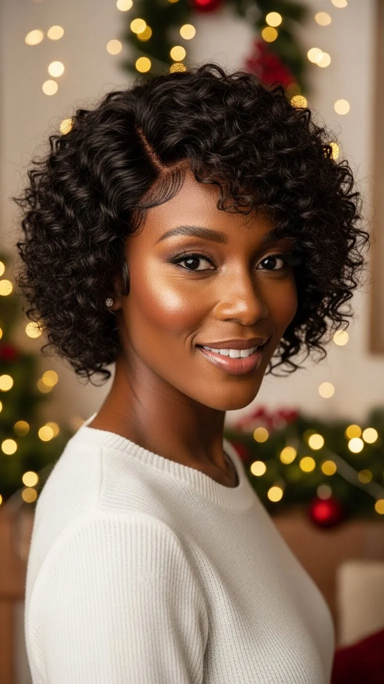 A curly bob wig is a quick way to switch up your holiday style without long prep. Choose a wig with soft curls for movement. A side part adds body and shape. Fluff the curls with your fingers rather than a comb. This keeps them defined. You can find synthetic curly bobs for a low price that still look natural. Trim the ends slightly if you want a more custom shape. Add a little water mixed with conditioner to refresh curls. Keep the lace simple and not over-plucked. This keeps the hairline natural without extra work. Add a sparkly clip near the part for a holiday touch. Store the wig on a stand at night to keep it neat. This look works well for photos and pairs nicely with red lips or soft glam makeup. Perfect for days when you want a cute style fast.