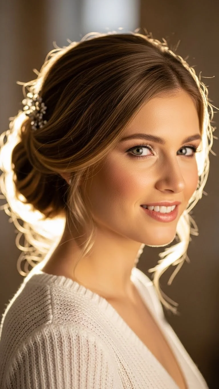 A loose braided bun gives gentle movement. Make a braid from your ponytail and wrap it into a bun. Keep it loose for softness. Add a shimmer pin for charm. This style works for medium and long hair. It stays comfortable and looks relaxed. You can adjust the braid anytime without ruining the bun.