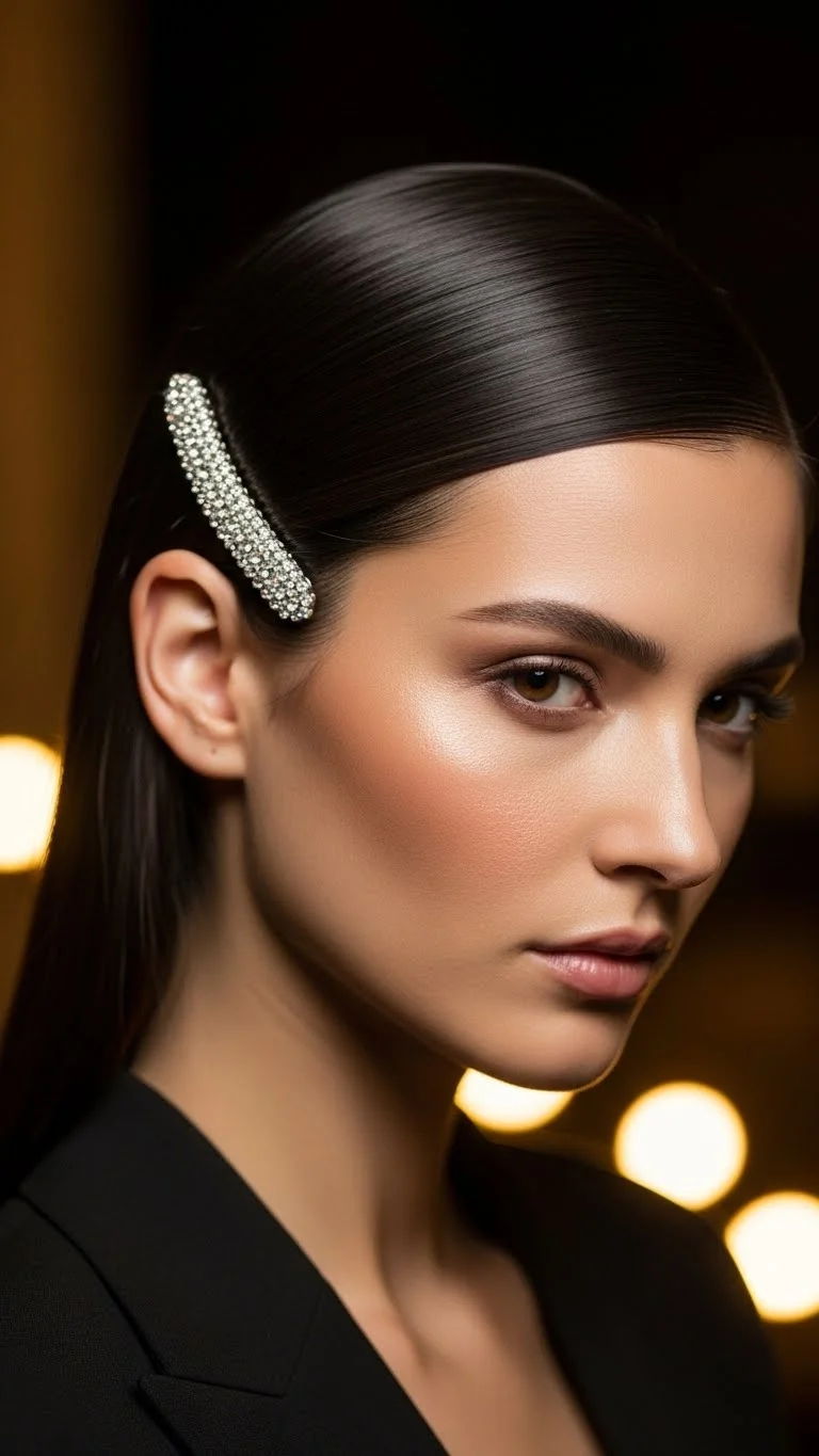 1. Sleek Straight Hair with Crystal Barrette