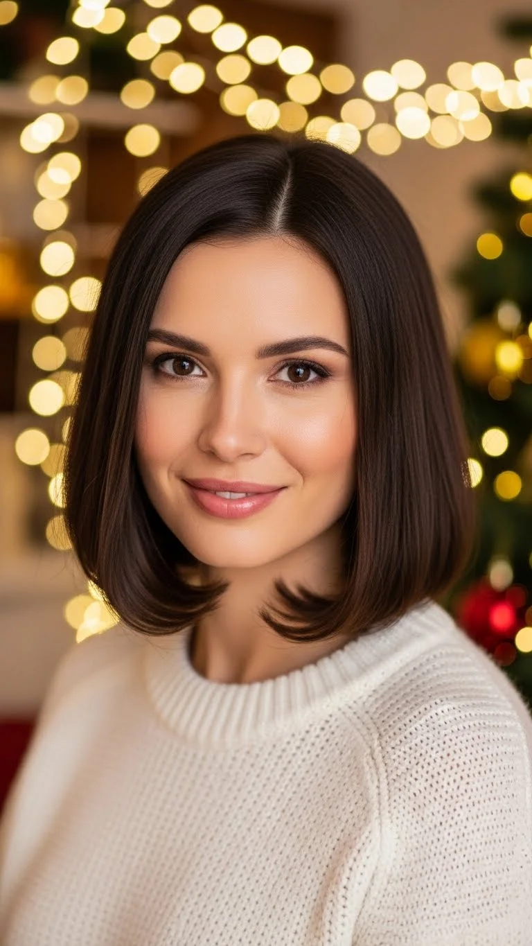 A smooth blowout gives a clean finish for holiday nights. Use a round brush to shape your hair while drying. Add a small amount of shine serum to the ends. This style works for mid-length or long hair. You can add a tiny clip or pin near the front if you want more detail. It’s easy to maintain and pairs well with many outfits.