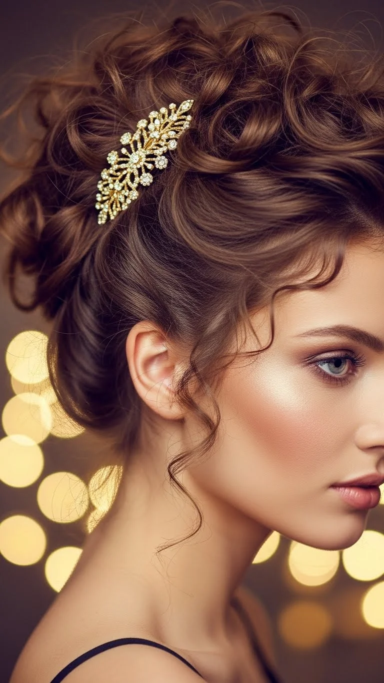 1. Curly Side Puff with Accent Clip