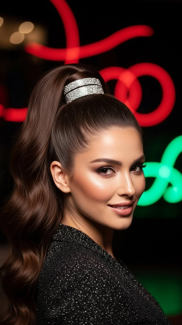 1. High Ponytail with Sparkling Wrap