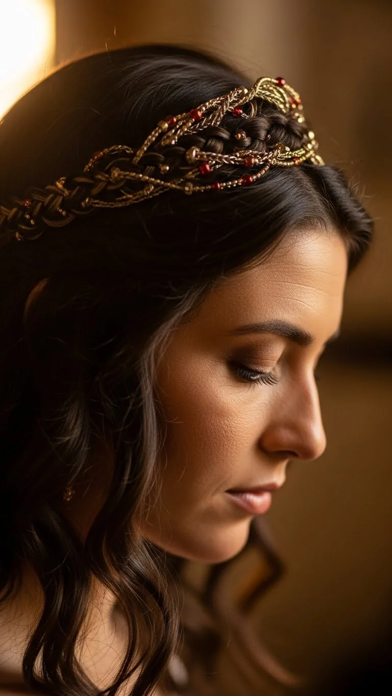 1. Braided Crown with Small Ornaments