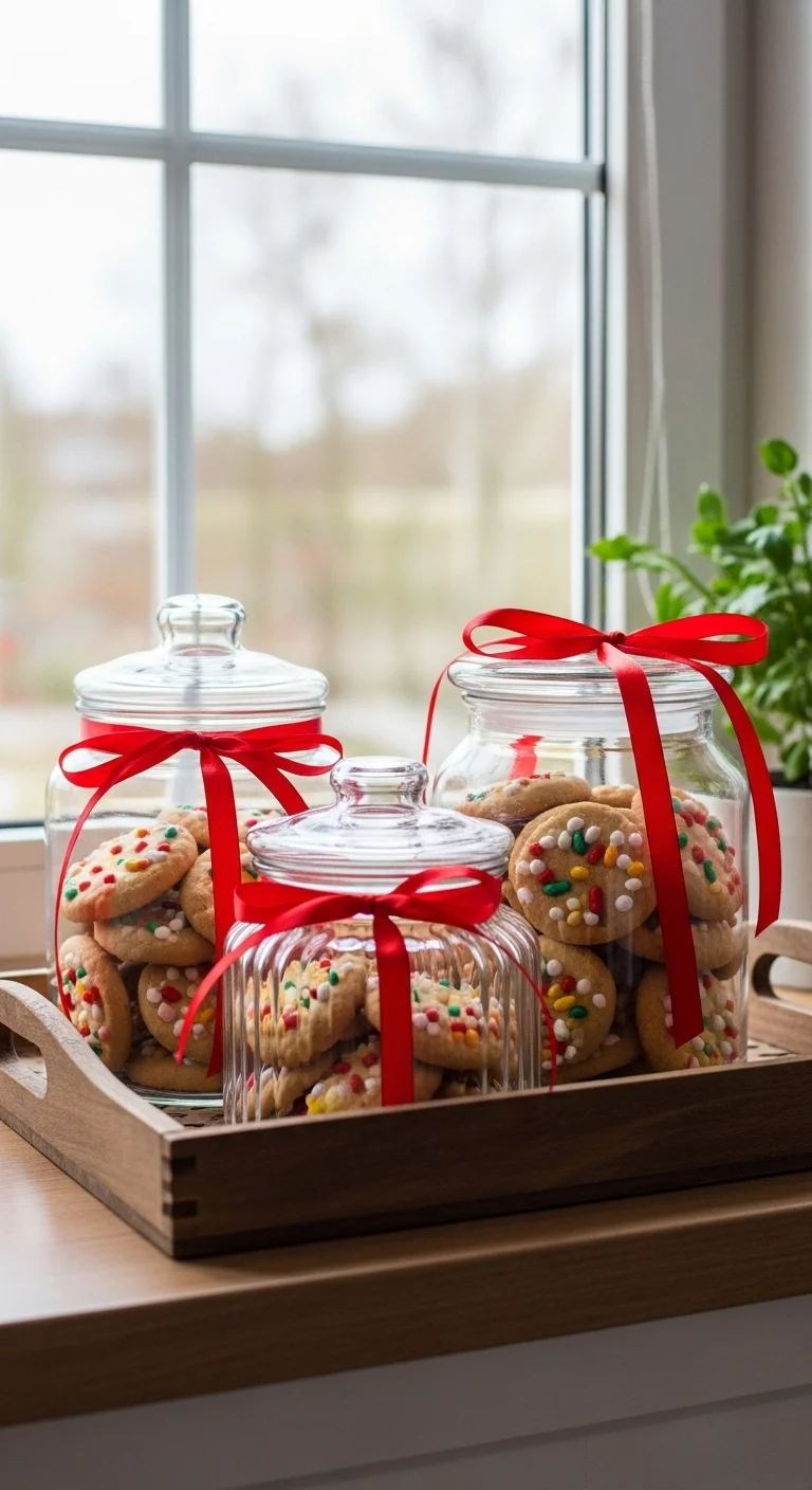 Fill glass jars with cookies, peppermints, or mini marshmallows. Tie ribbons around the lids for an added touch. It’s both decoration and delicious snack storage. Bonus tip — label jars with chalk tags for a rustic touch.