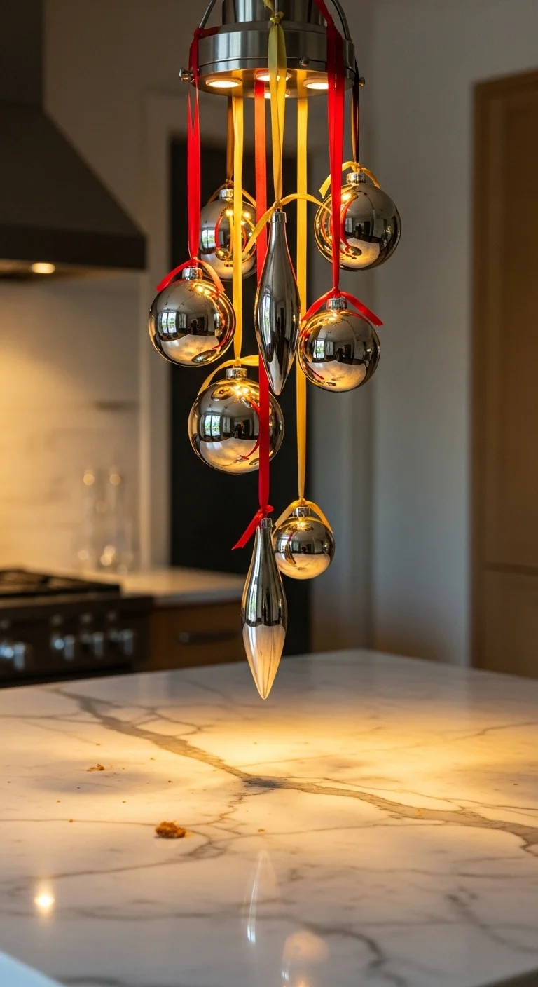 If you have pendant lights or chandeliers, hang ornaments from them. Use thin ribbon or fishing wire for a floating look. Stick with matching colors or metallic tones for a polished finish. This trick adds sparkle right where people gather.