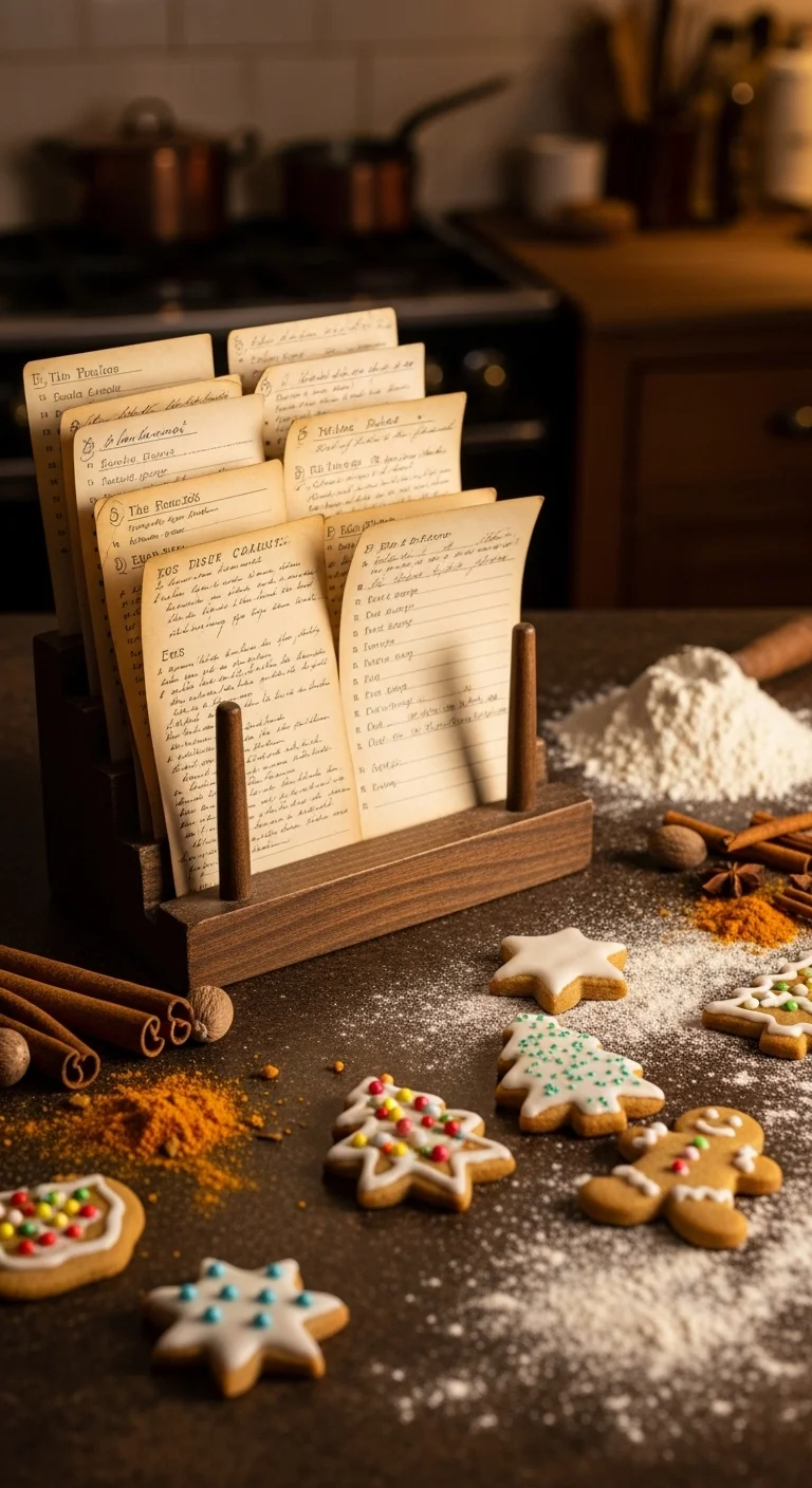Show off old family recipes as part of your decor. Place them in a small frame or stand near your baking area. It adds a sentimental touch while keeping your favorite treats within reach.