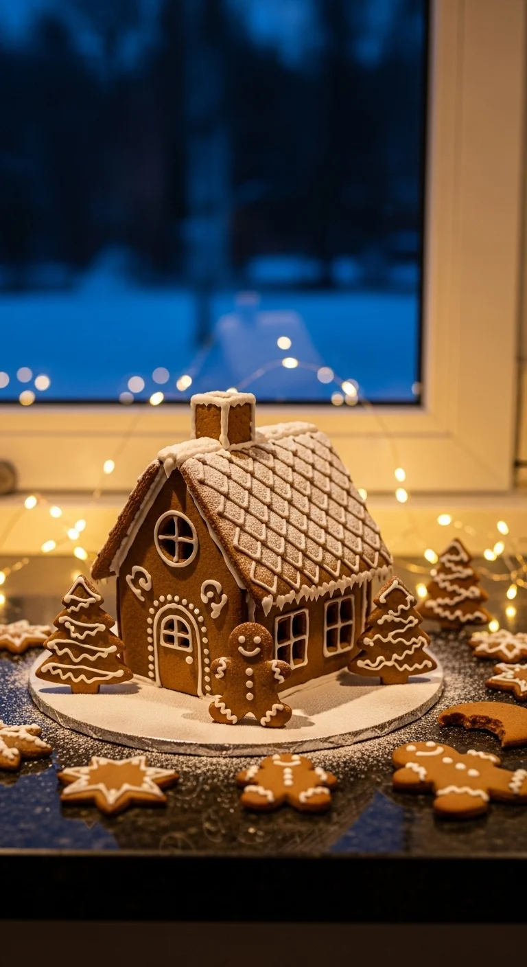 Show off your baking skills with a gingerbread display. A gingerbread house doubles as decor and dessert. Add powdered sugar for “snow” and prop it on a cake stand. Keep smaller cookies in jars for an easy grab-and-go treat. It’s festive, edible, and fun for kids too.