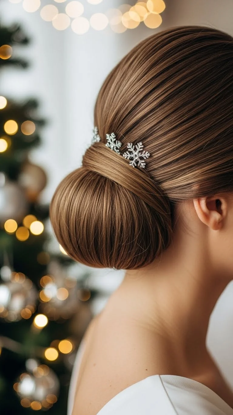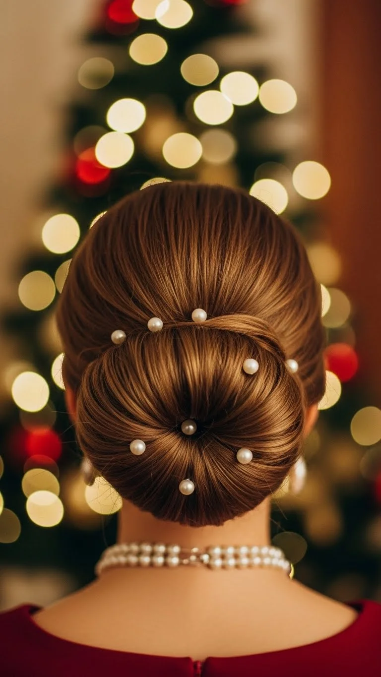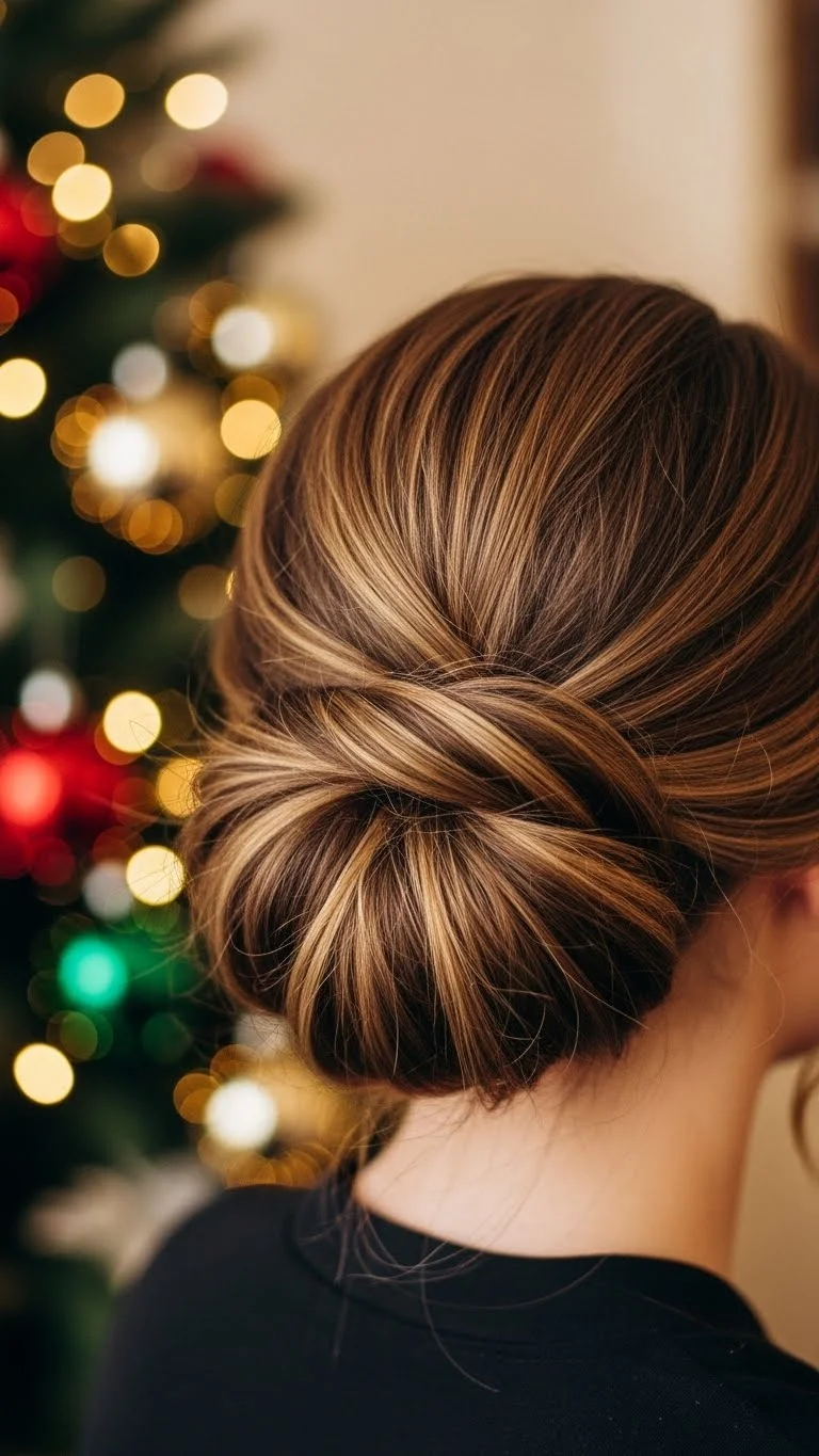 A messy bun works well when you’re short on time. Pull hair into a loose bun and pin randomly. Let some strands fall. Add sparkle pins for a holiday touch. You can find packs of pins for low cost. Curl a few face pieces for softness. This look suits both casual sweaters and dressy outfits. It feels relaxed but festive.
