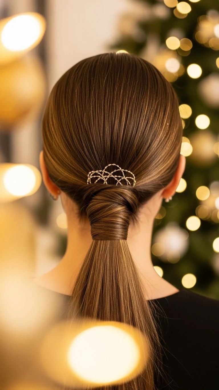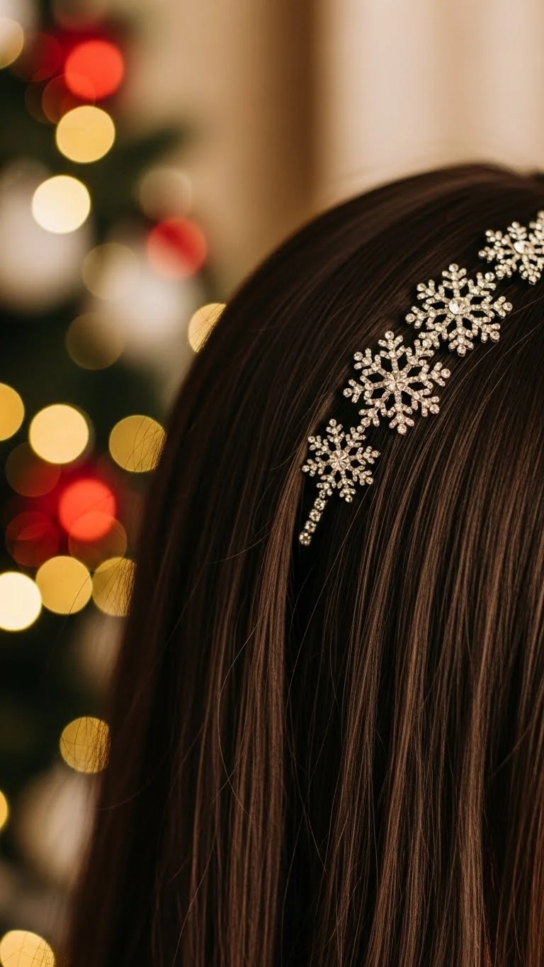 Straight hair with a festive headband looks simple and sleek. Straighten lightly. Add a small amount of serum for shine. Place a sparkly or velvet headband on top. You can find inexpensive packs in shops. This style works for all lengths. It’s perfect when you’re short on time but want a polished look.