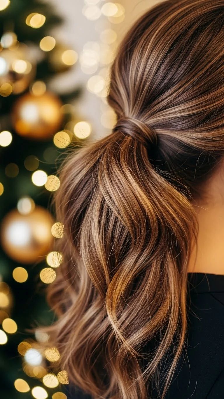 A textured pony feels relaxed and cheerful. Curl the hair loosely. Gather low at the nape. Leave a few strands loose. Add a velvet ribbon or sparkly tie. Dry shampoo adds lift and grip. This style takes only a few minutes. It works especially well for medium and long lengths. Great for busy party evenings.