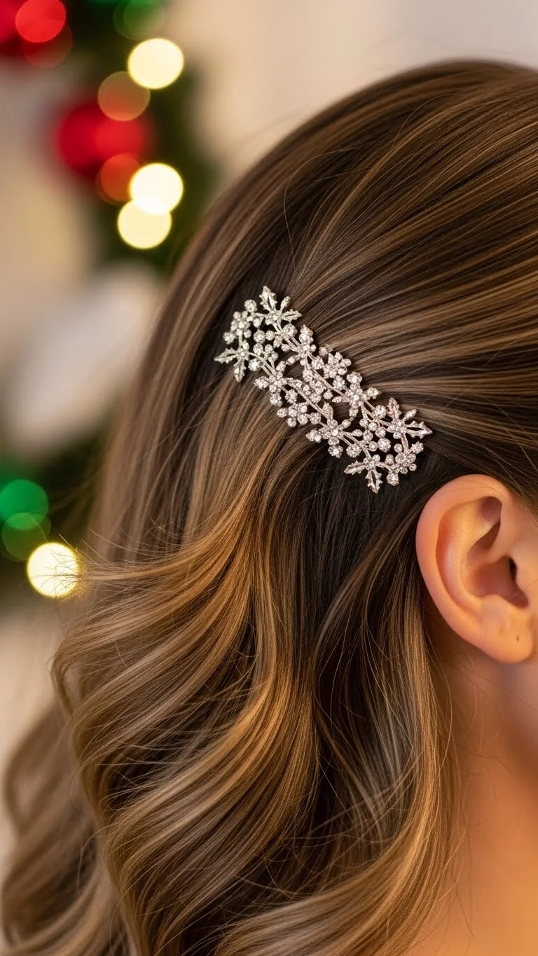 Soft waves always fit a holiday party. They frame the face and add shine without effort. You can create them quickly with a basic curling iron. Wrap large sections for a loose finish. Brush gently to smooth out any tight bends. Add a small amount of serum for light gloss. If your hair tends to fall flat, use flexible hairspray. It keeps the waves soft, not stiff. Try clip-in barrettes from a discount shop. Gold or silver pieces add charm for a few dollars. If you’re short on time, curl only the top layer and let the rest stay natural. It still looks polished.