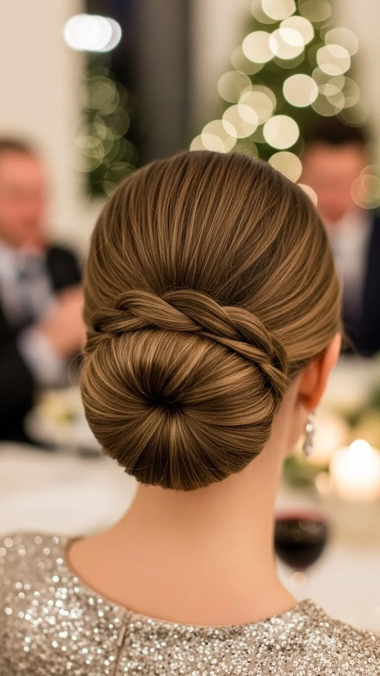 A relaxed twist feels classy without being stiff. Gather hair at the nape. Roll it upward and tuck into itself. Pin along the seam. Leave a few wisps around the face. Use hairspray to keep the twist from slipping. A simple metallic clip adds shine. You can practice this once or twice before the party so it feels quick. It works for medium to long hair.