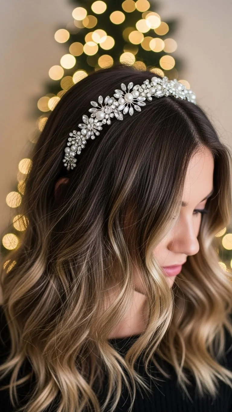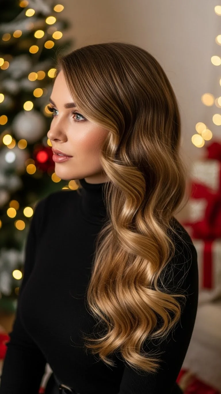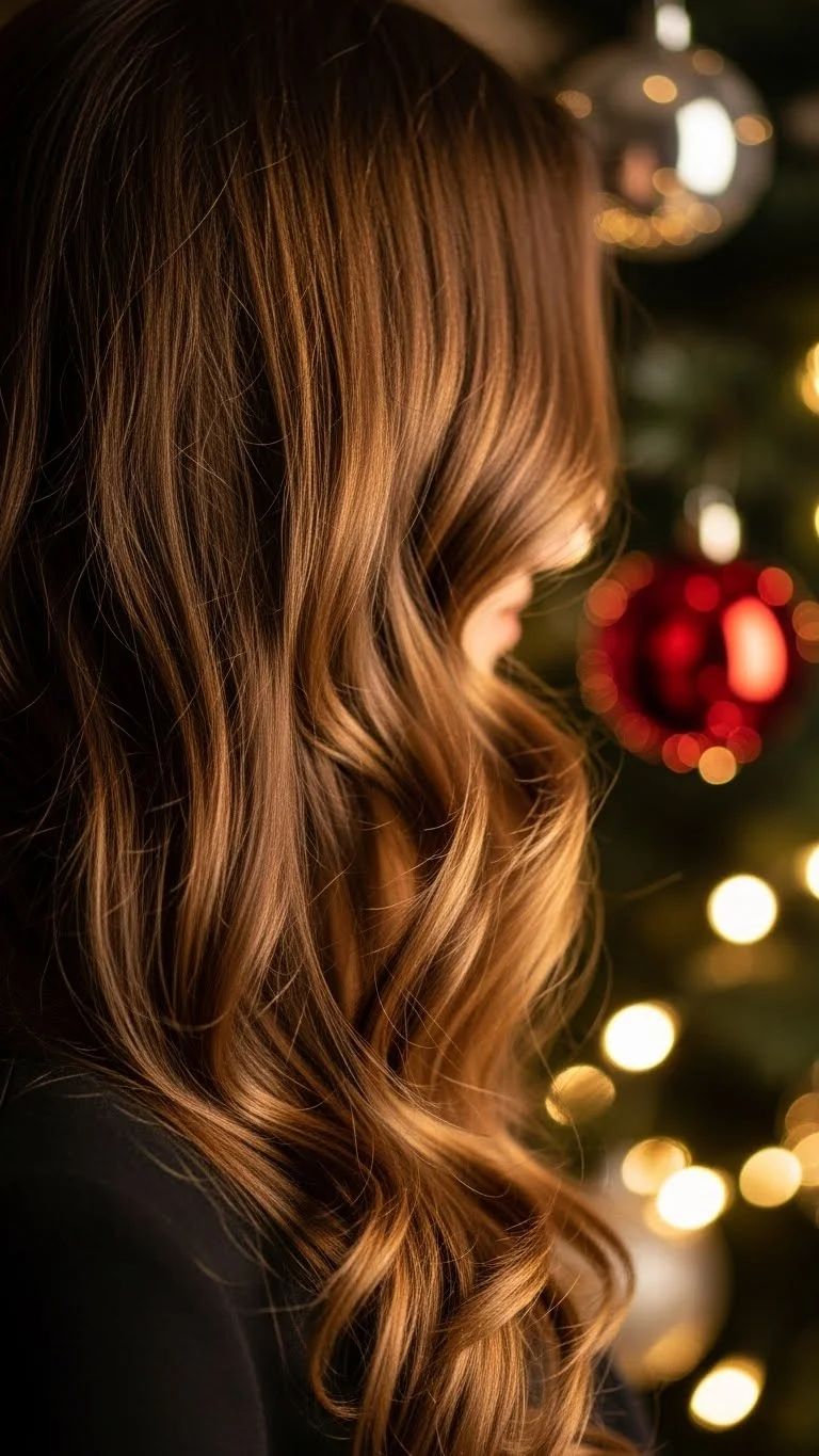 Boho waves look laid-back but stylish. Use a large curling wand and alternate curl directions for a loose, natural shape. Add a sparkly headband for a holiday touch—these are affordable and easy to find. Keep the top loose and slightly messy to match the vibe. A small amount of dry shampoo adds soft lift. This style works with almost any holiday outfit.