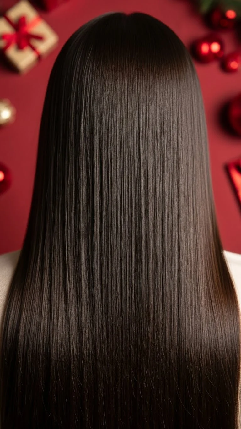Pin-straight hair looks sleek and modern. Use a straightener in small sections and finish with a small amount of shine spray. Add a festive headband or a thin sparkly clip for a simple touch. This style suits any outfit and photographs beautifully. If your hair gets frizzy, use a gentle smoothing cream on the ends.