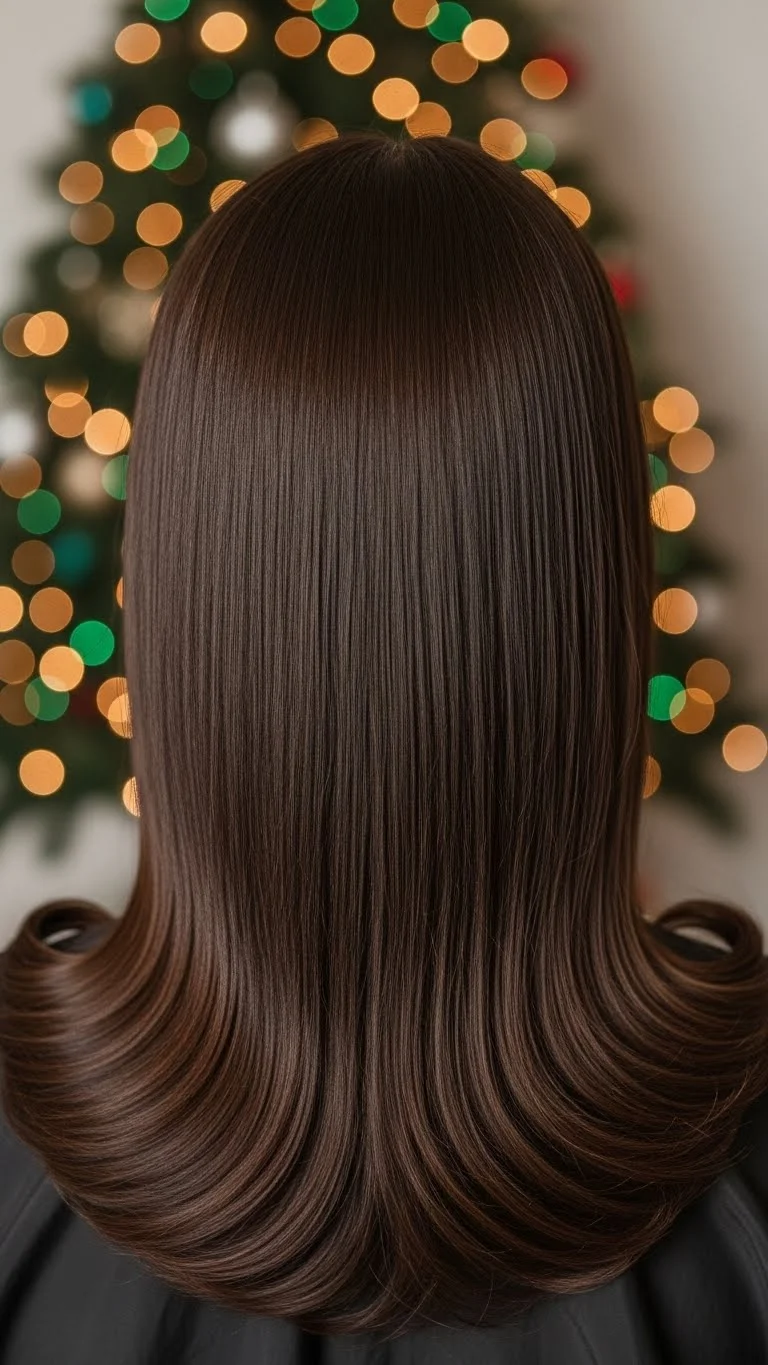 Retro flip ends bring a fun holiday spirit. Straighten your hair first, then curve the ends outward with an iron. This gives a playful, polished look. Add a side part for more shape. A headband with small gems or pearls paired with this style feels festive without costing much. Use a heat protectant first so the ends stay smooth.