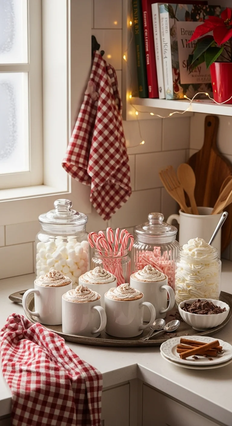 Turn a plain tray into a mini hot cocoa bar. Include mugs, cocoa mix, mini marshmallows, and candy canes. Add a jar of sprinkles and a spoon for stirring. Tuck in a few pine branches or a small ornament for decor. It’s practical and adorable—perfect for guests or cozy nights in. Use items you already own to keep it budget-friendly.