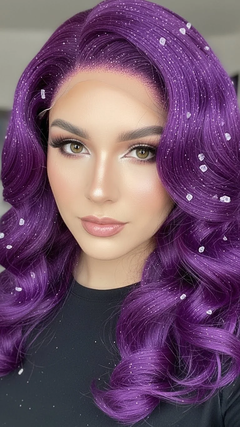 This style is inspired by “Frozen” vibes. Use a light blue or teal wig. Apply snowflake glitter or small paper snowflakes using a bit of hair gel. It gives the illusion that snow is falling on your hair. This is a very creative look for a themed party. You can also use a glitter spray for a frozen finish. It is easy to wash out of a synthetic wig later. This style feels magical and unique.