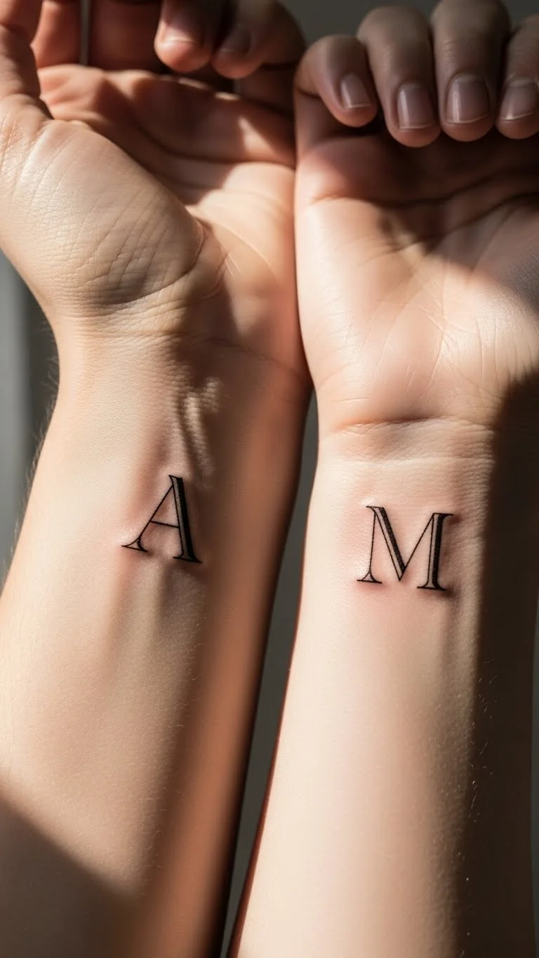 Initial tattoos feel personal and direct. Each partner can carry the other’s first letter. Keep the font simple to avoid blur over time. Small serif or clean script fonts work well. Wrist or arm placement keeps it clear. Many tattoo shops offer free font choices. This helps save money. Avoid extra decoration to keep the design clean. Black ink keeps the letter sharp. This idea suits couples who value clarity. It shows connection in a clear way. The design stays meaningful without extra detail.