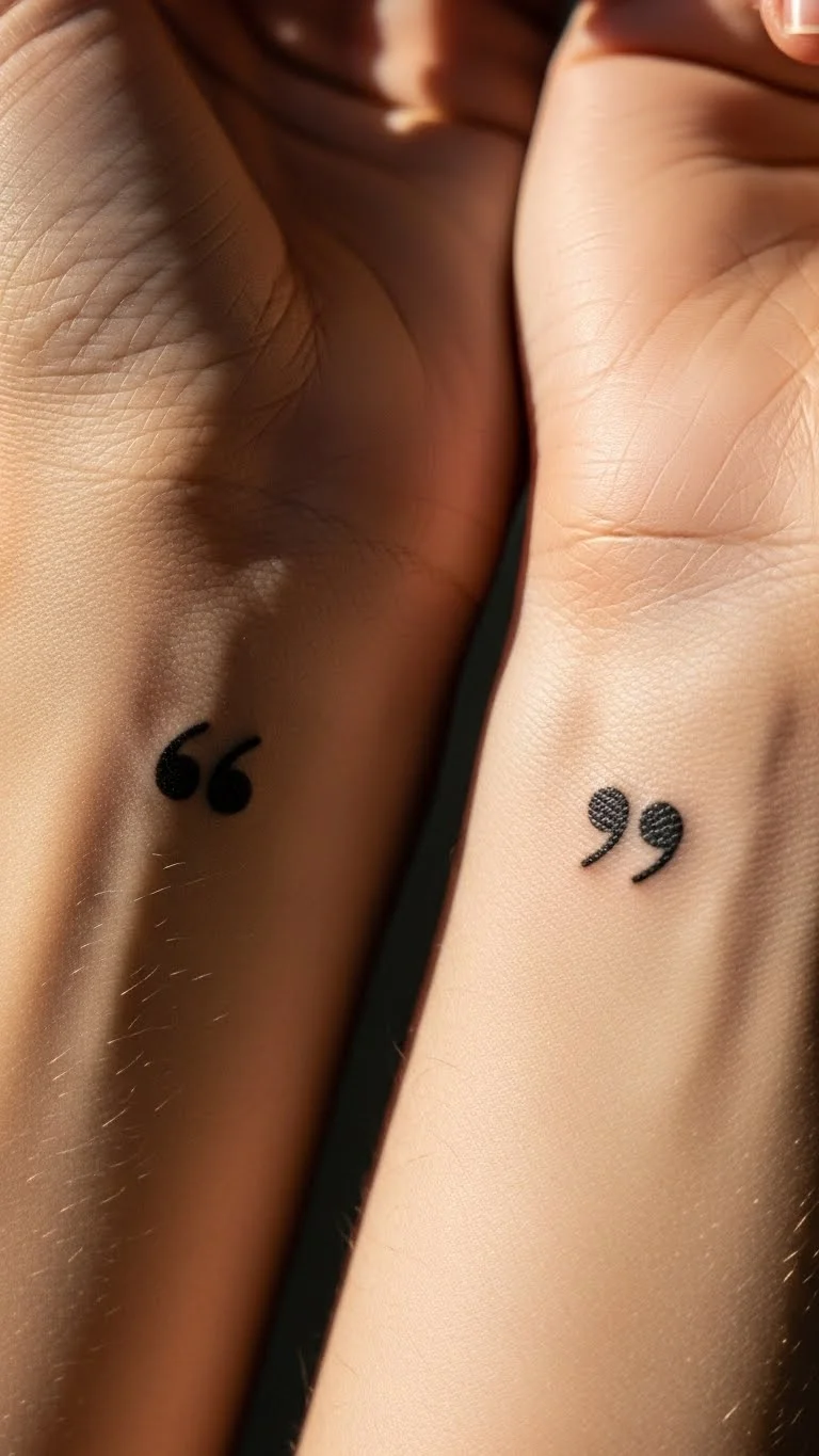 Symbolic quote tattoos use marks instead of words. This keeps the design small and affordable. You can choose symbols that hold shared meaning. Keep the lines clean and bold enough to last. Wrist placement keeps it visible. Black ink works best. This idea suits couples who like private meaning. It feels personal without text.