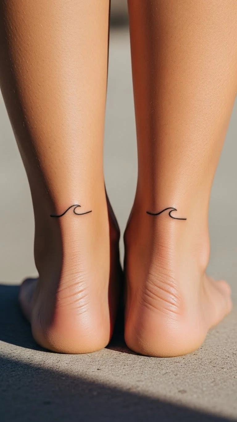 Wave tattoos show calm connection. A single curved line works best. Keep the wave small to manage cost. Ankles, wrists, or feet suit this style. DIY idea: draw waves with one smooth stroke. Avoid extra lines or dots. This reduces tattoo time. Couples often choose similar waves, not exact copies. That keeps the bond clear while allowing personal style. Waves age well due to simple lines. This tattoo fits couples who enjoy travel or quiet moments together. It stays easy to hide and easy to share.
