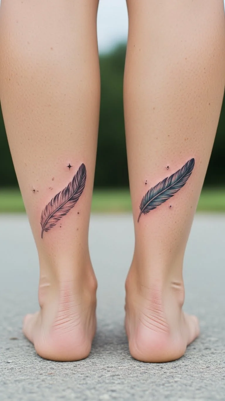 Feather tip tattoos feel light and gentle. Focus only on the tip, not the full feather. This keeps the design small and affordable. Placement on calves or arms works well. DIY tip: trace a feather tip from a simple drawing. Remove extra lines. This saves time at the shop. Each partner can angle the feather differently. That keeps individuality alive. This design feels soft and meaningful without heavy detail.