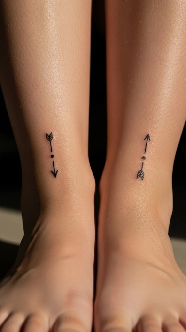Arrow dot tattoos feel clean and connected. A short arrow with a dot adds balance. Keep the size small to manage cost. Ankles or wrists work well. DIY idea: draw the arrow in one stroke. Add the dot last. This keeps the design neat. Each arrow can face inward for shared meaning. This tattoo suits couples who like subtle signals. Small shapes can still carry strong connection.