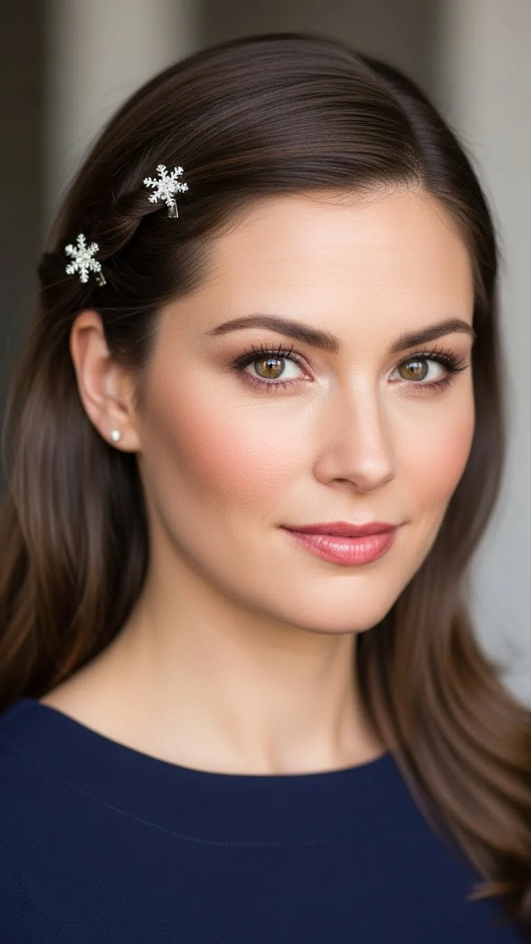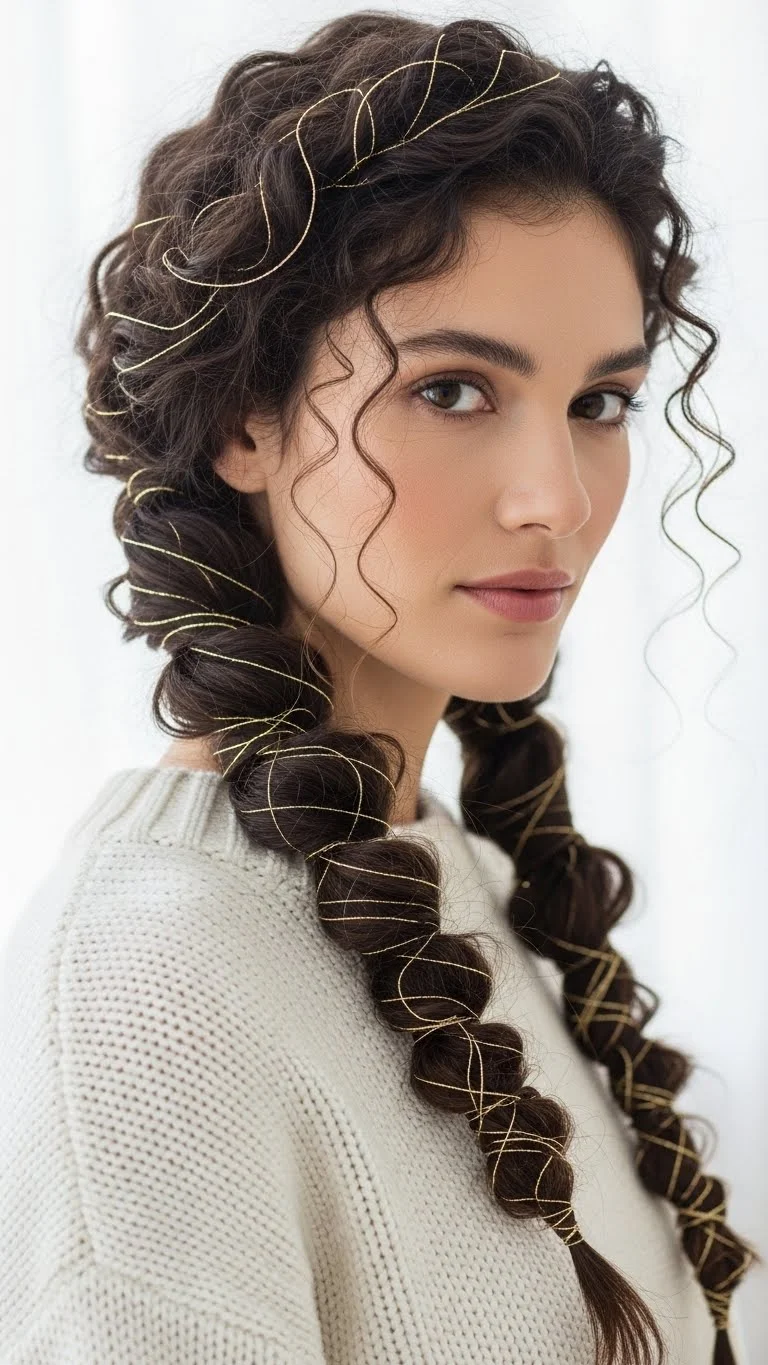 You don’t need a store-bought accessory if you can braid. Take a section of hair from behind one ear. Braid it all the way to the end and secure it with a tiny elastic. Wrap that braid over the top of your head and pin it behind the other ear. It creates a natural crown made of your own hair. This works best on medium to long curls. If your hair is too short, try two smaller braids that meet in the middle. It’s a romantic, soft look that’s perfect for Christmas dinner.