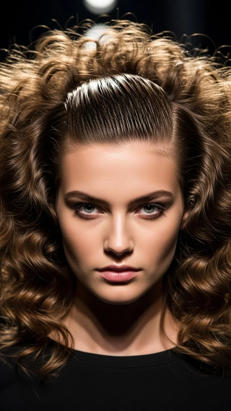 This is a very trendy, editorial look. Use a firm-hold gel to slick the top and sides of your hair back behind your ears. Leave the entire back section of your curls natural and big. The contrast between the wet-look top and the dry, bouncy back is very striking. It’s a great way to wear “big hair” without it overwhelming your face. Use a fine-tooth comb only for the slicked part to get it very smooth. This style is perfect for a fancy Christmas gala or a night out.
