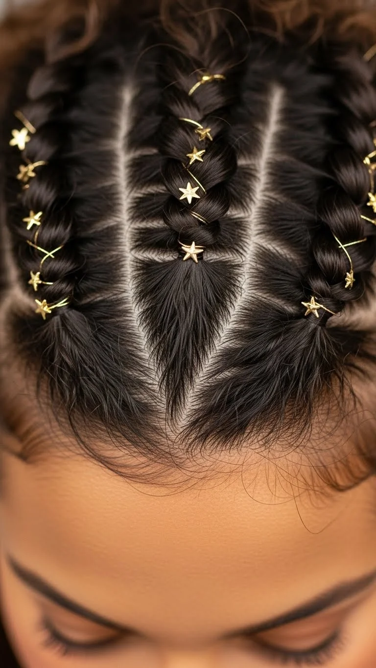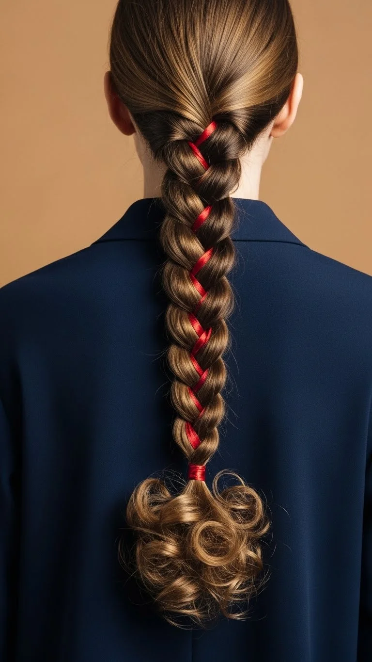 Pigtails aren’t just for kids. For a cozy Christmas look, part your hair down the middle. Braid each side loosely, leaving the ends curly. Instead of plain elastics, wrap gold embroidery thread around the base and the ends. This adds a subtle metallic shimmer that catches the light. This style is perfect for a casual “pajamas and hot cocoa” morning. It also prevents tangles if you’re busy in the kitchen. If your hair is short, just do two small twists at the front. It’s a playful but polished vibe for the holidays.