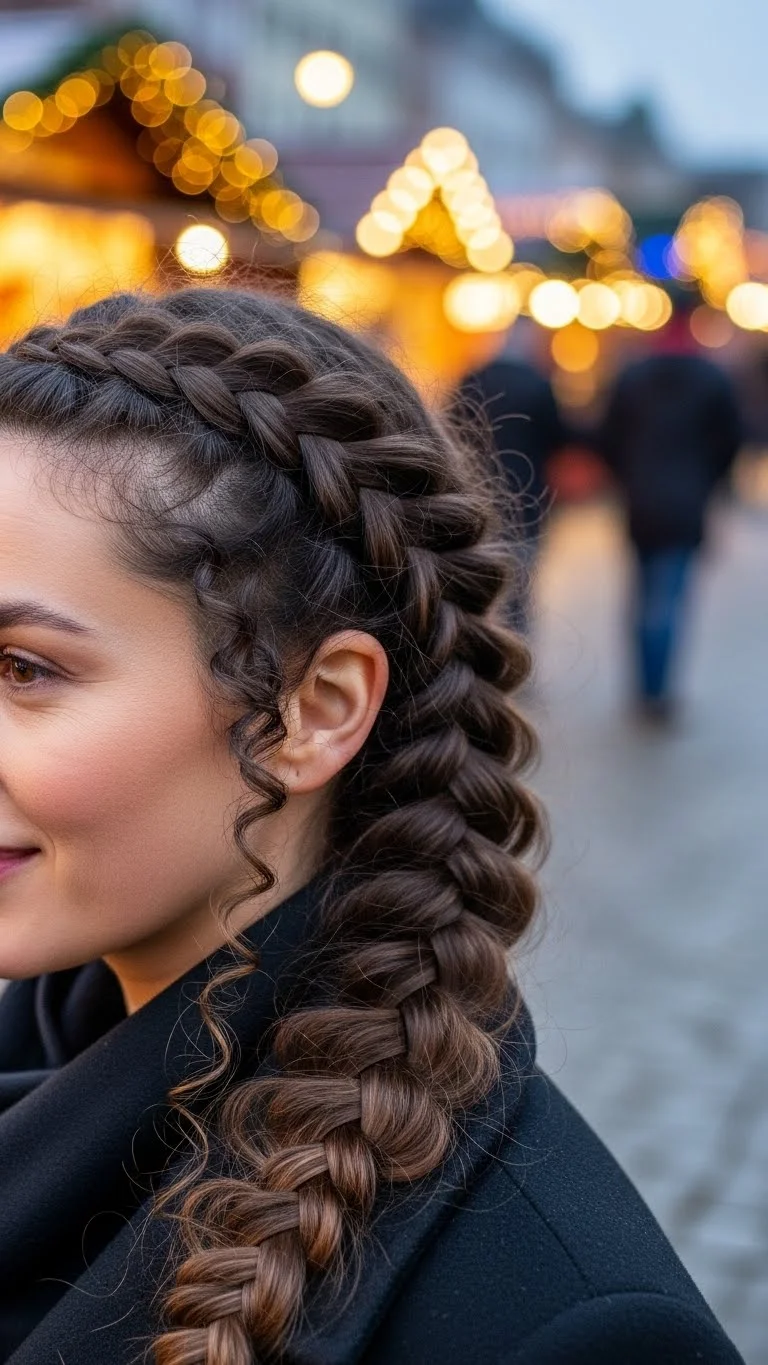 A simple side braid is classic. To make it festive, tuck a silk flower—like a small poinsettia—behind your ear. You can find these in the floral section of a craft store. It’s a very soft, feminine look. This is perfect for a Christmas brunch. It keeps your hair controlled but still looks very special. If your hair is too short for a braid, just use the flower with your hair down. It’s an instant holiday upgrade for a few cents.