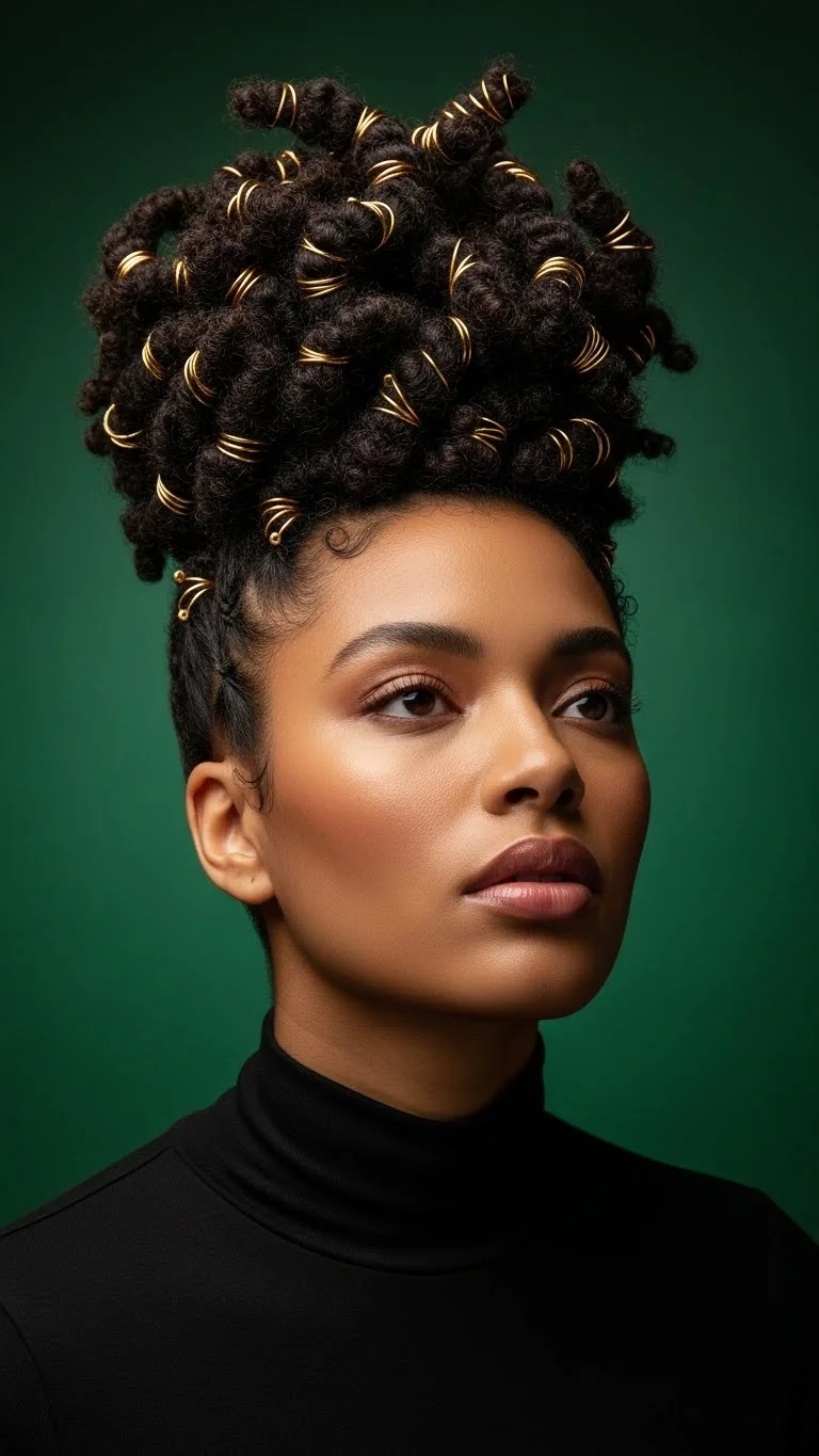 If you want high drama, go for the faux hawk. Use bobby pins to pull the sides of your hair tightly toward the center of your head. Start at the nape and work your way up. Let the curls in the middle stand tall and messy. This creates a mohawk silhouette that looks edgy and fun. It’s a great way to show off your earrings. If you have fine hair, use a little dry shampoo at the roots for extra lift. You don’t need heat tools for this; your natural volume does the work.