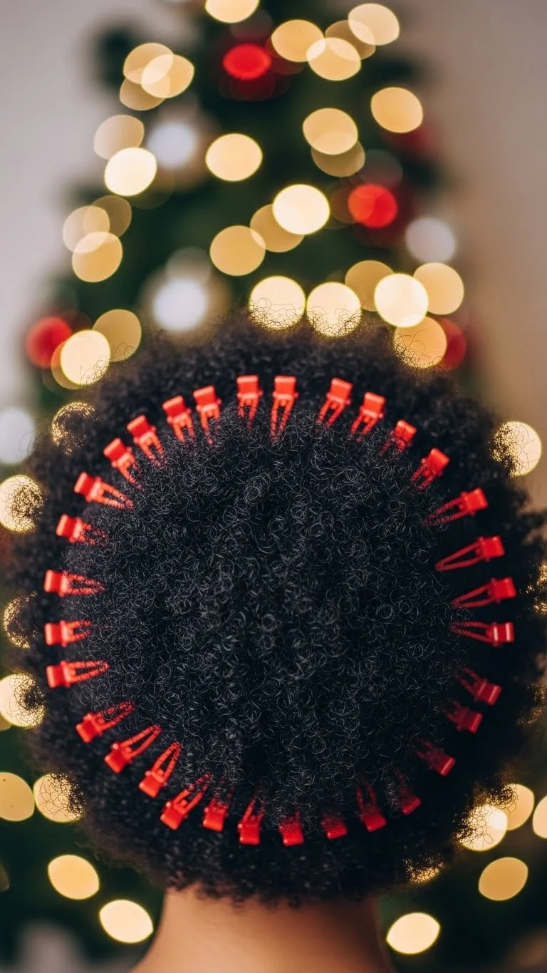 A curly puff is easy and cheerful. Gather your curls gently at the crown and secure with a soft band to avoid tension. Add a few small red clips around the edges for color. Choose clips with smooth edges so they don’t snag. You can find mixed packs for very low prices. If your hair is shorter, create a half-puff and place the clips only on the top section. Use a bit of conditioner or cream to keep curls hydrated. This style stays comfy all day.