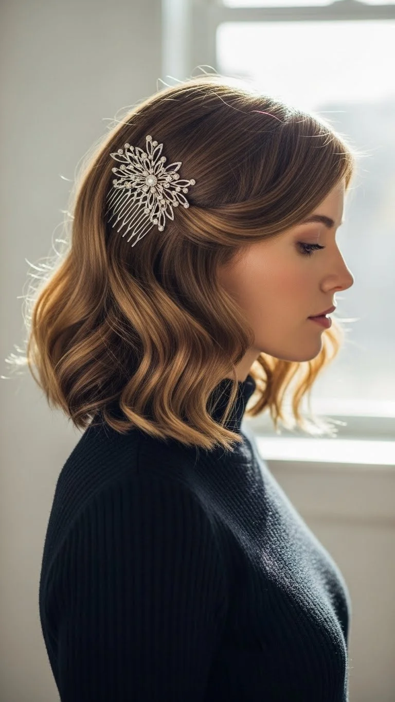 A side comb adds charm to a wavy lob. Create loose waves and slide a decorative comb above one ear. Choose ones with small gems or metallic details. These combs are affordable and easy to reuse. For shorter hair, pick a smaller comb so it stays secure. The style looks polished without feeling stiff.