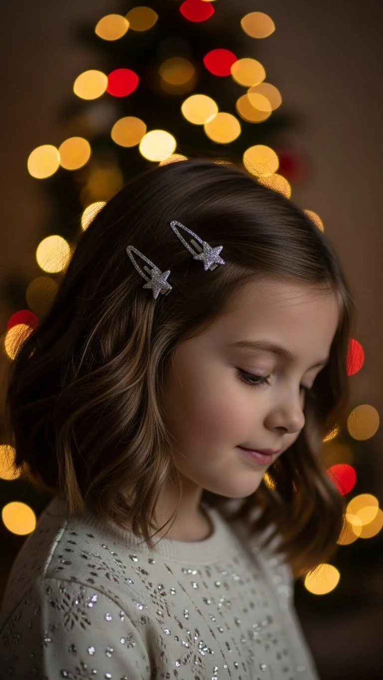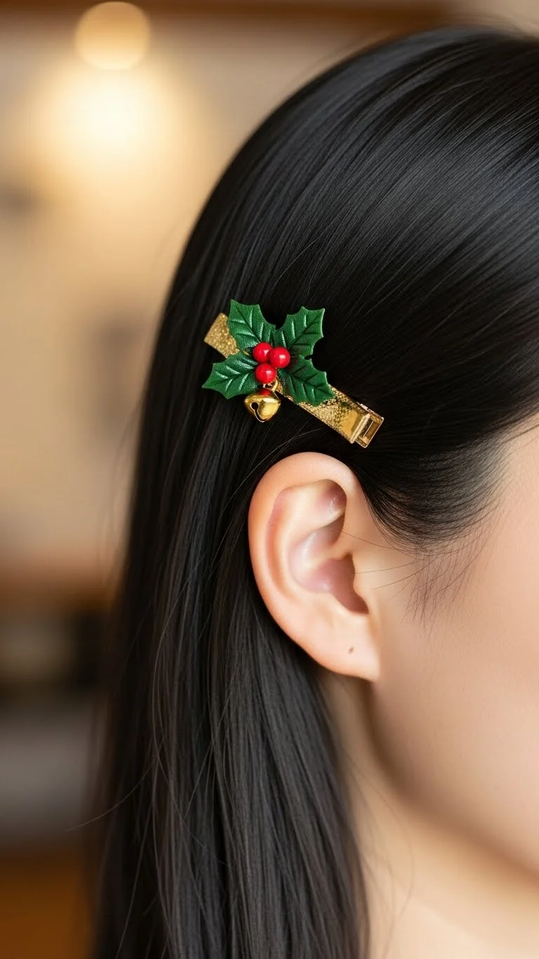 Straight hair can still look festive with one quick touch. Tuck the hair behind one ear. Add a holiday barrette shaped like a star or snowflake. Keep it lightweight for comfort. This style takes seconds and works on any hair length.