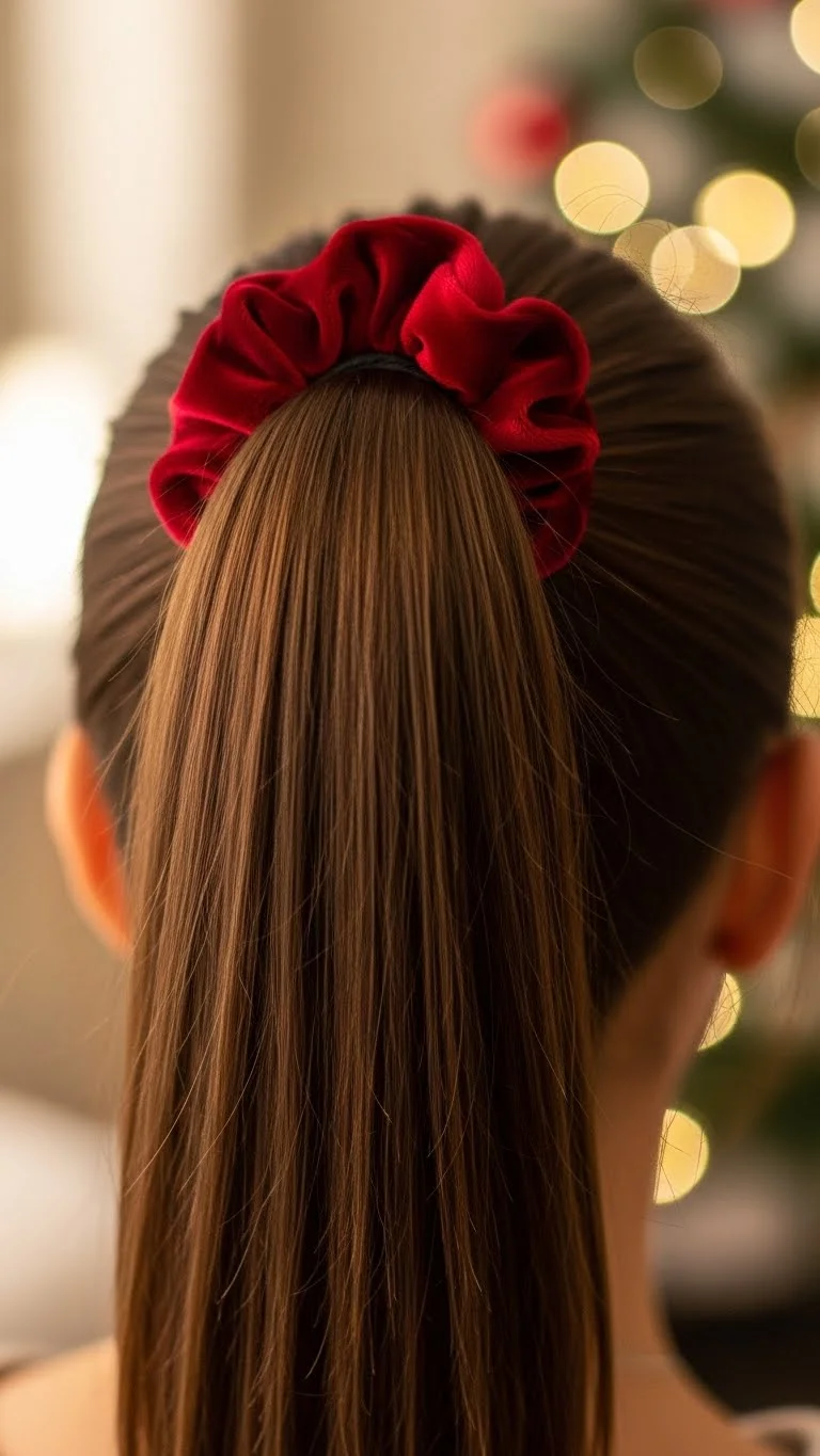 - High Ponytail With Festive Scrunchie