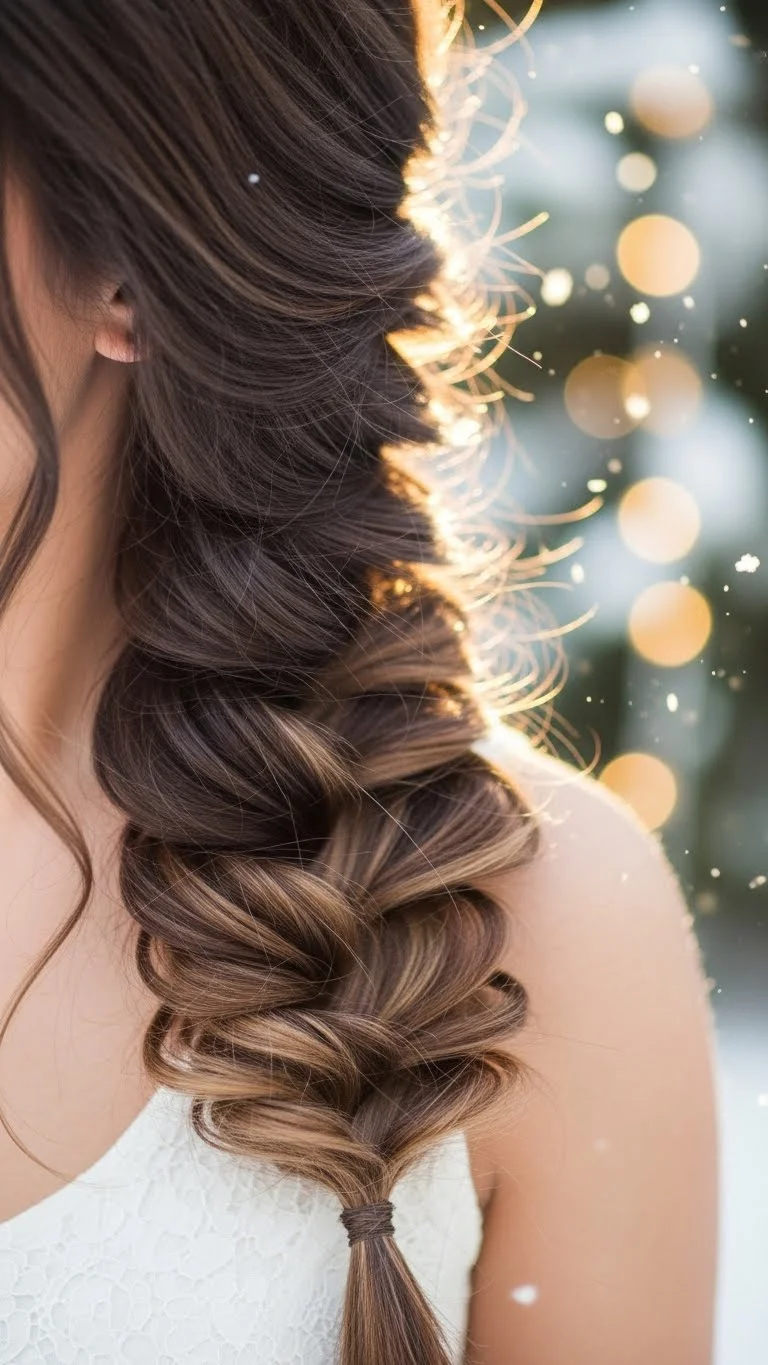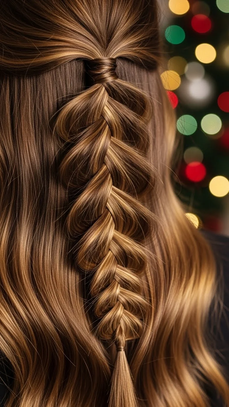 A waterfall braid adds movement and elegance. Start at the top of your head and let pieces fall through the braid. It looks complex but is easy once you practice. Add a thin ribbon through the braid for a holiday feel. You can use leftover gift ribbon to save money. This style works best on medium to long hair. It’s great for holiday photos and looks beautiful from the side. Keep a few curls at the bottom for a soft finish.