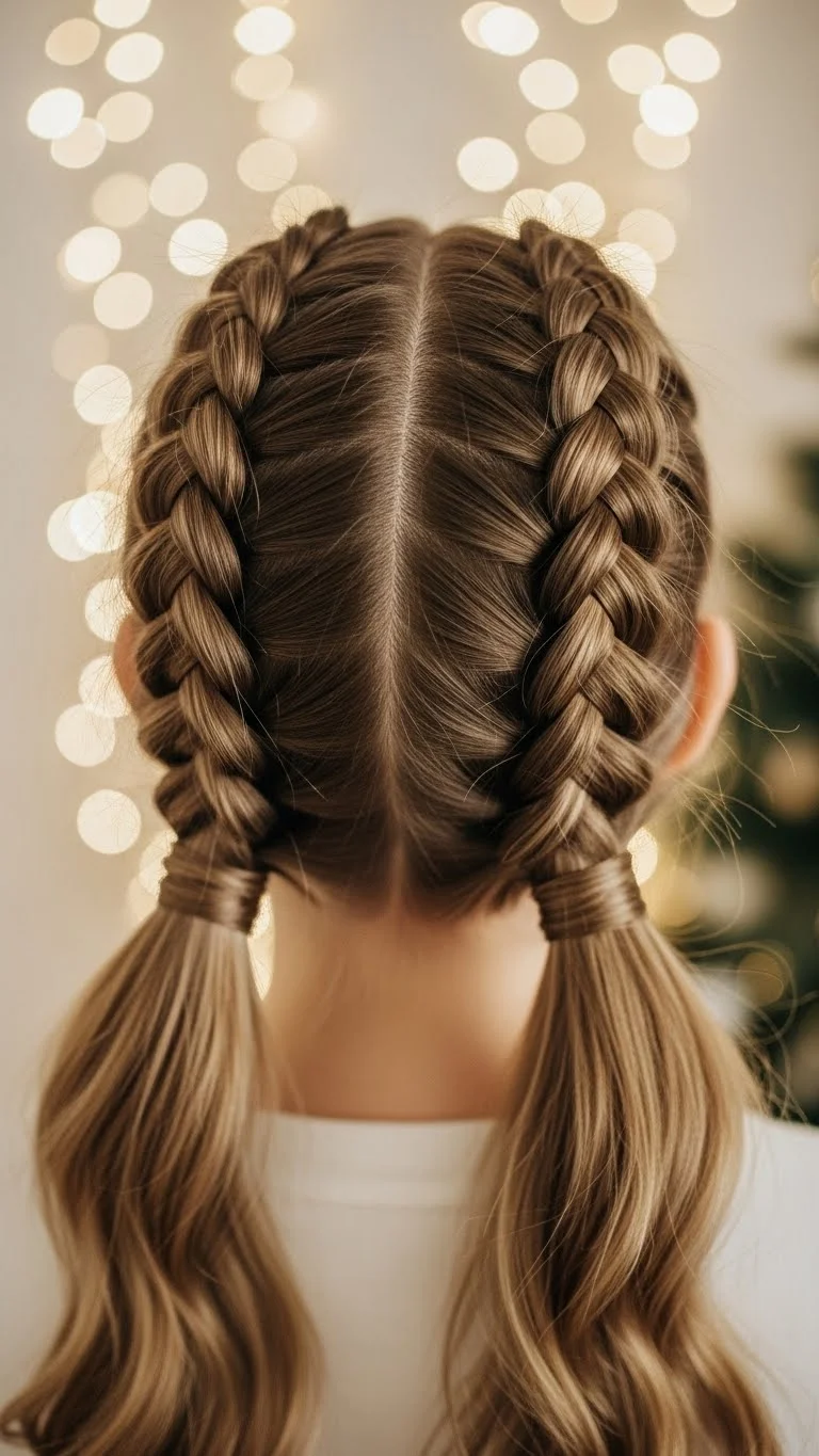 Dutch pigtails are fun and bold. Braid from the top down on both sides. Keep them tight so they stay neat. Add ribbon at the ends for holiday charm. This style is secure and lasts all day. It’s great for outdoor events or active gatherings. If your hair is thick, divide it into smaller sections for easier braiding. For a softer look, loosen the braids slightly. It’s simple, affordable, and full of personality.