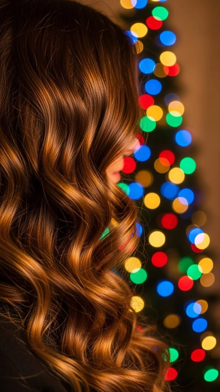 Soft full curls look beautiful in holiday lighting. Use a large curling iron or heatless curl method. Keep sections wide. Brush through for bounce. Add a few pins on one side if you want detail. You don’t need expensive tools. Even old-fashioned foam rollers work well. This style suits most hair lengths and adds volume. If your curls fall quickly, set them with flexible hairspray. It’s perfect for holiday photos and late-night events.