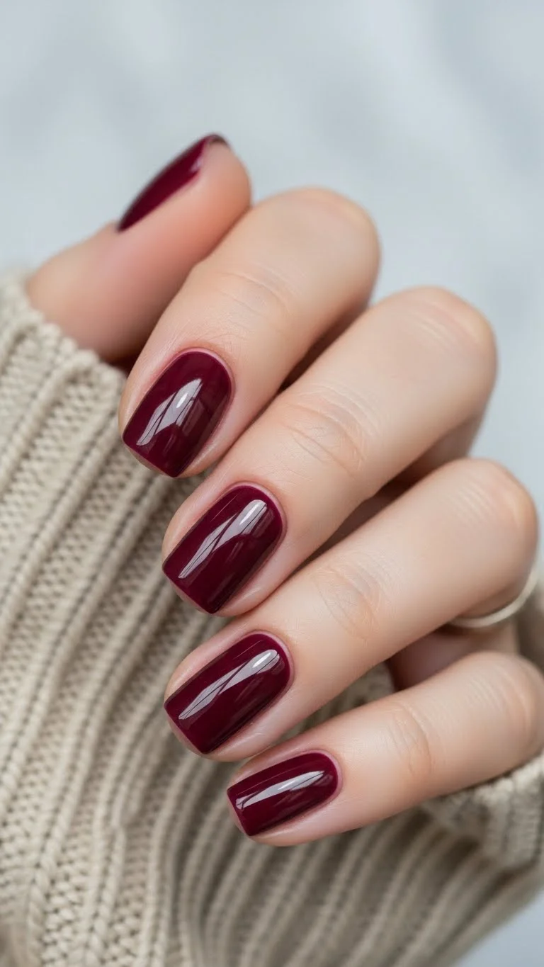 Not everyone wants a bright “fire engine” red. A dark burgundy or wine color is a more understated way to show love. It is a classic choice that works for the office and a date. Darker colors look best on shorter nails with a rounded edge. It keeps the look clean and not too aggressive. When using dark colors, always use a base coat to prevent staining your natural nails. This shade is very forgiving and easy to apply. It is a sophisticated alternative for someone who wants a “quiet luxury” Valentine’s vibe.