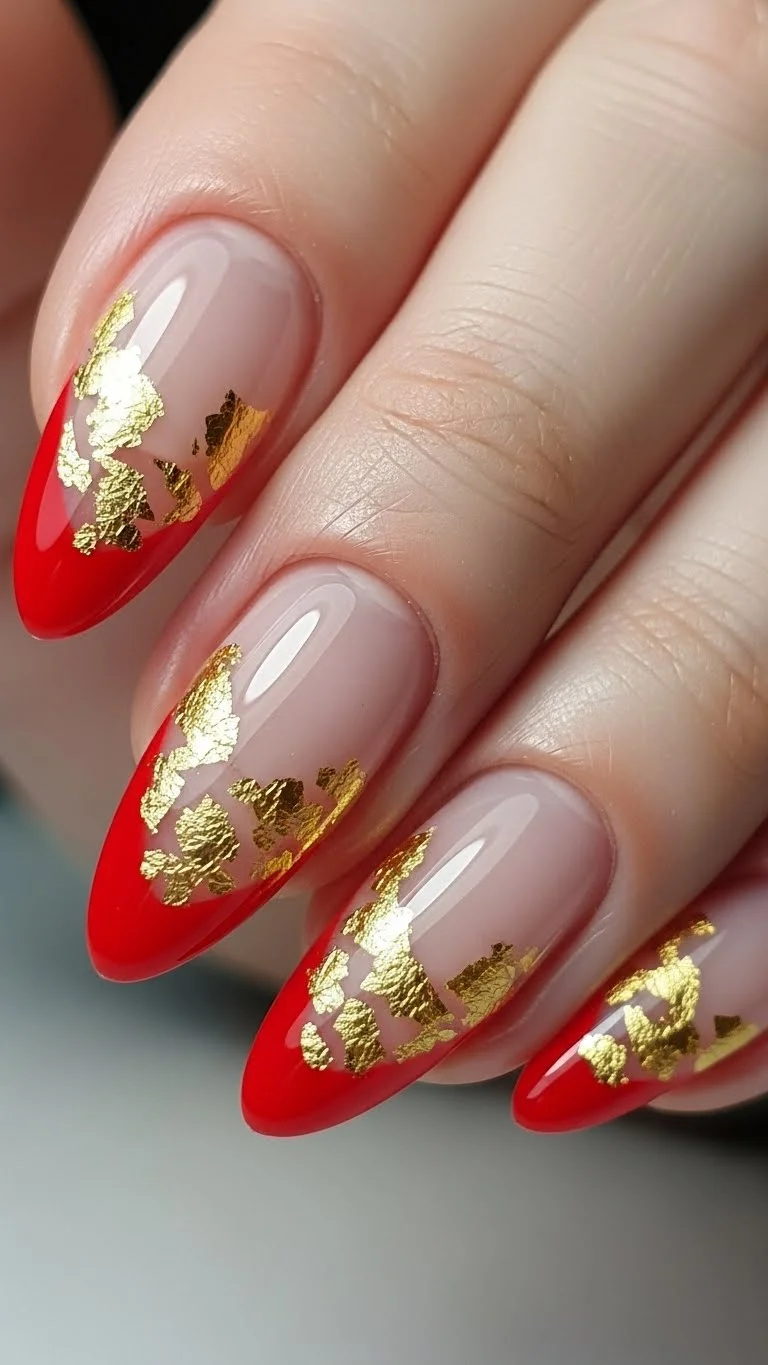 1. Red Tips with Gold Foil