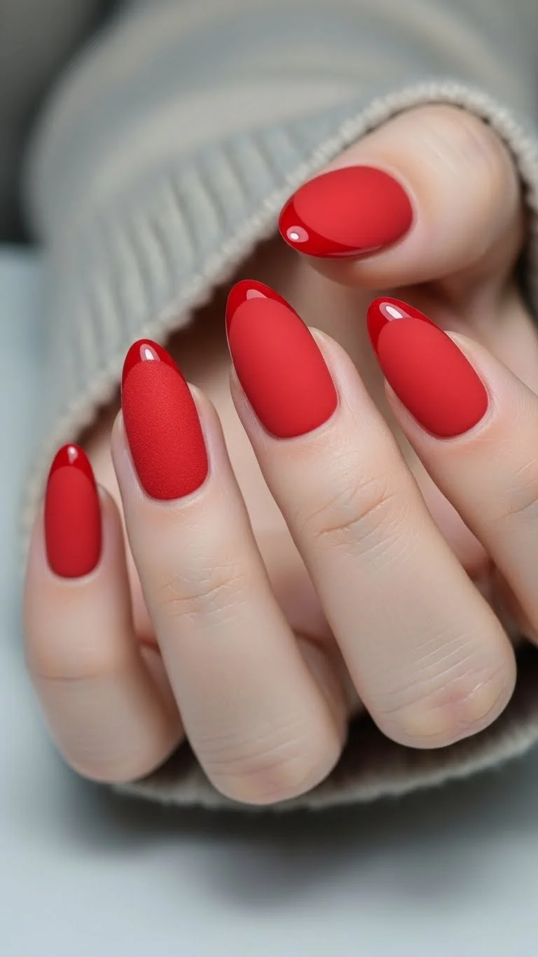 Matte nails offer a modern twist on the traditional red. The lack of shine makes the color look deeper and more saturated. It feels edgy yet romantic. You can transform any red polish you already own into this look. Just buy a matte top coat. It is a cheap way to double your polish collection. Apply your red base as usual and let it dry completely. Then, swipe on the matte layer. If you are in a pinch, some people hold their wet nails over steam from a kettle for a few seconds. This dulls the shine naturally. Be careful not to get too close to the heat. It is a quick way to get that velvet texture for free.