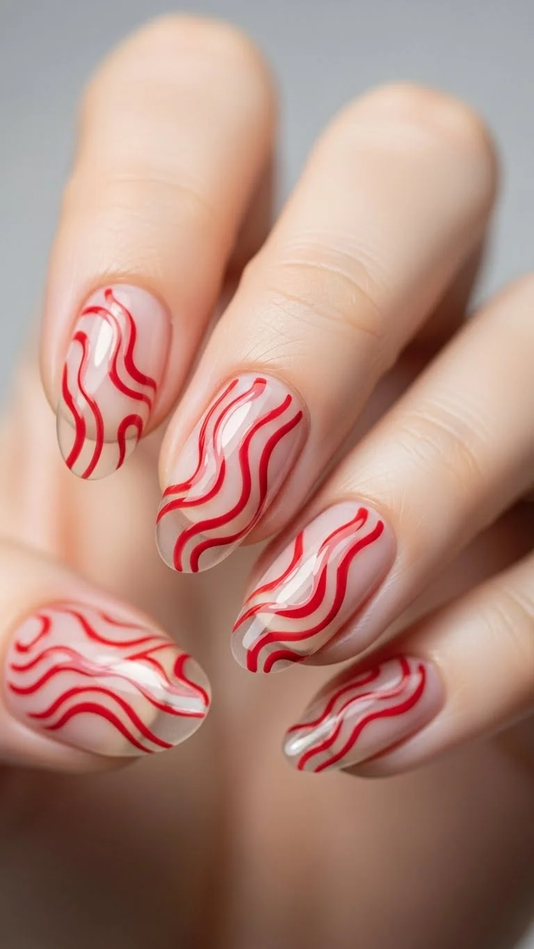 If you aren’t good at straight lines, abstract art is for you. Wavy “swooshes” are very popular right now. Use a thin brush to draw organic red lines over a clear or nude base. There is no wrong way to do this. Some lines can be thick and others thin. This “negative space” look is very trendy and doesn’t show growth. It is a low-maintenance way to wear red. You only need one color and a clear coat. It looks like you spent hours at a boutique salon, but it only takes ten minutes at your kitchen table.